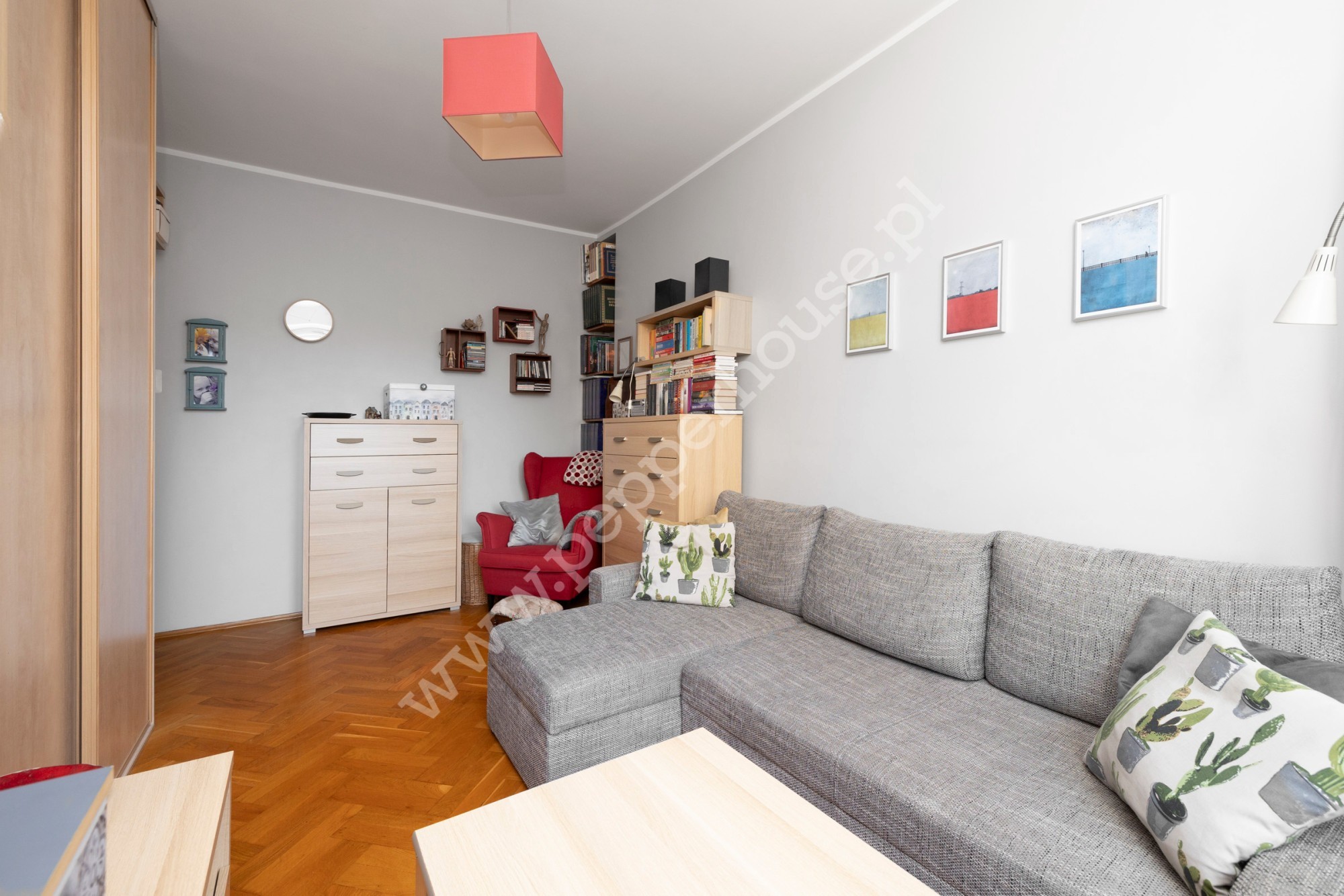 Największą zaletą mieszkania jest układ pomieszczeń- bardzo rzadko spotykany w tym metrażu: