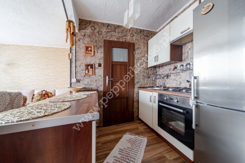 Lokal w pełni wyposażony. Znajdziemy tu lodówkę, piekarnik, kuchenkę gazową i pralkę w łazience. W salonie jest duża szafa w zabudowie.