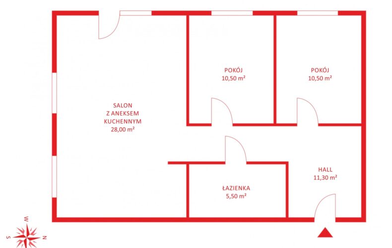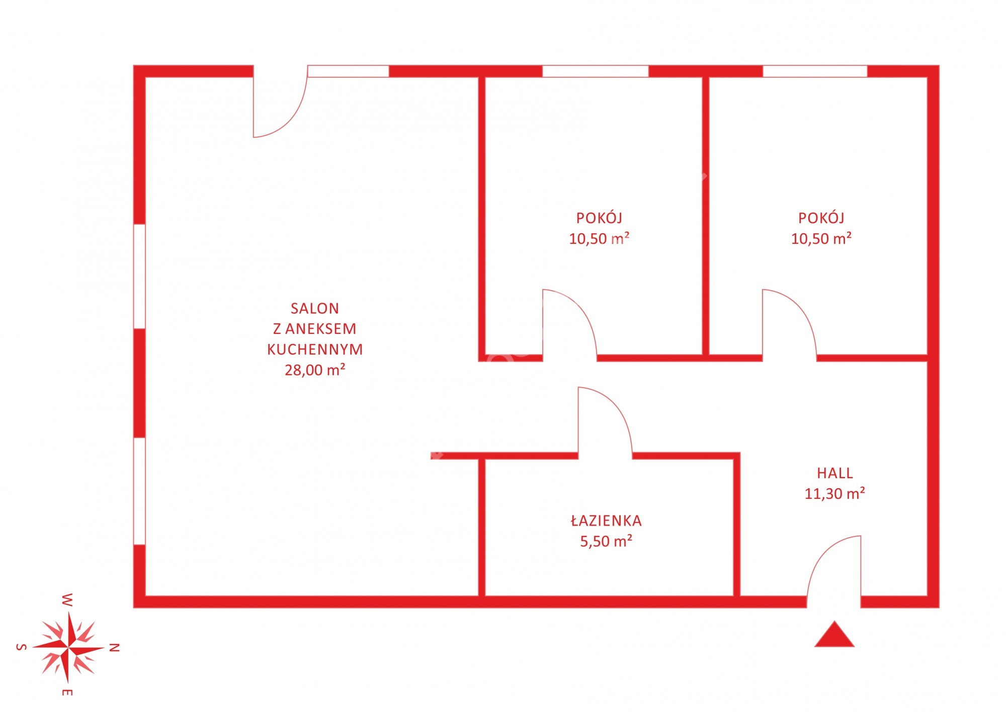 Lokal o powierzchni 66 m2, składa się z salonu z aneksem kuchennym (28 m2), sypialni (10 m2), pokoju (11,5 m2), łazienki (5,7 m2), przedpokoju (11,43 m2). Mieszkanie posiada ekspozycję północno-wschodnią, dzięki czemu jest słoneczne