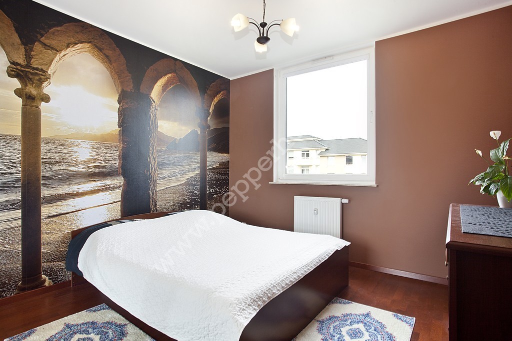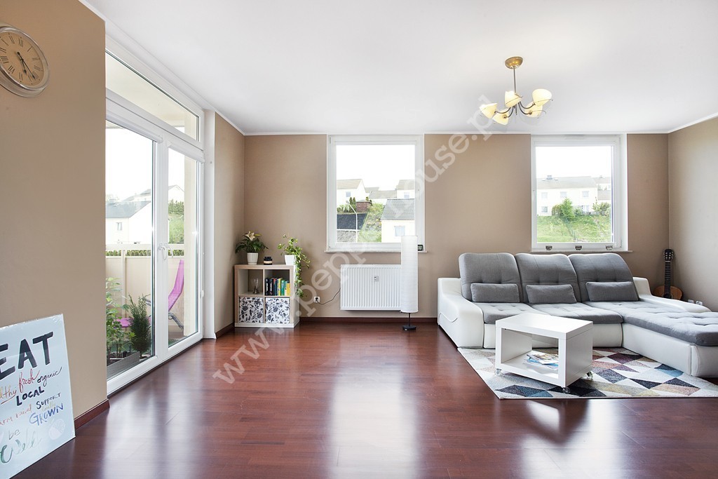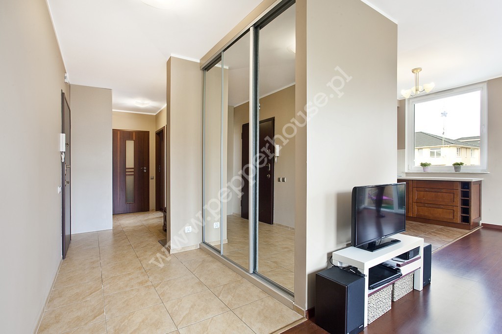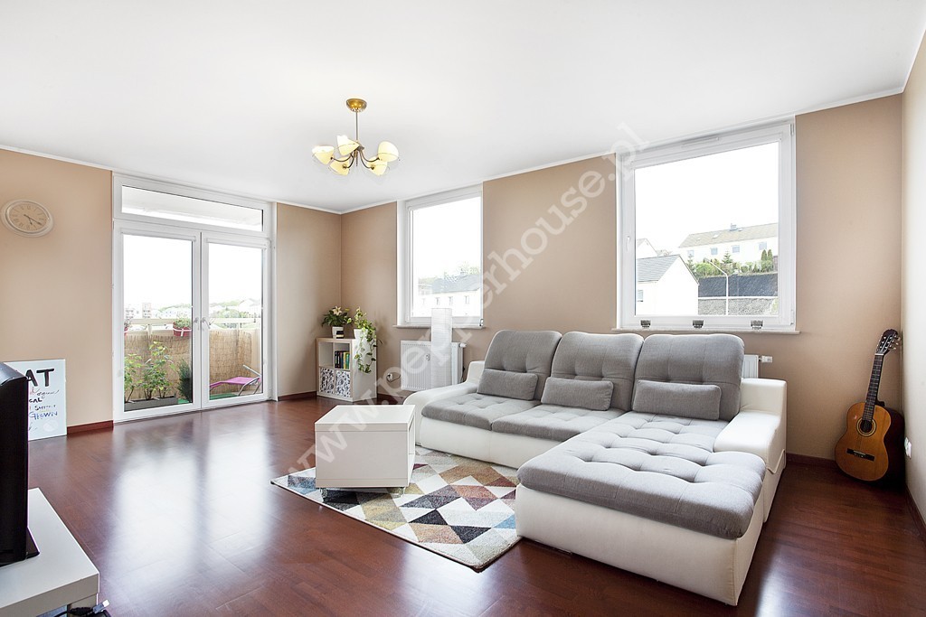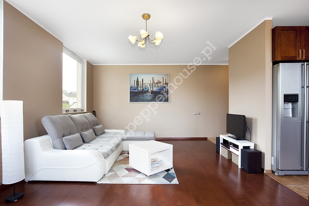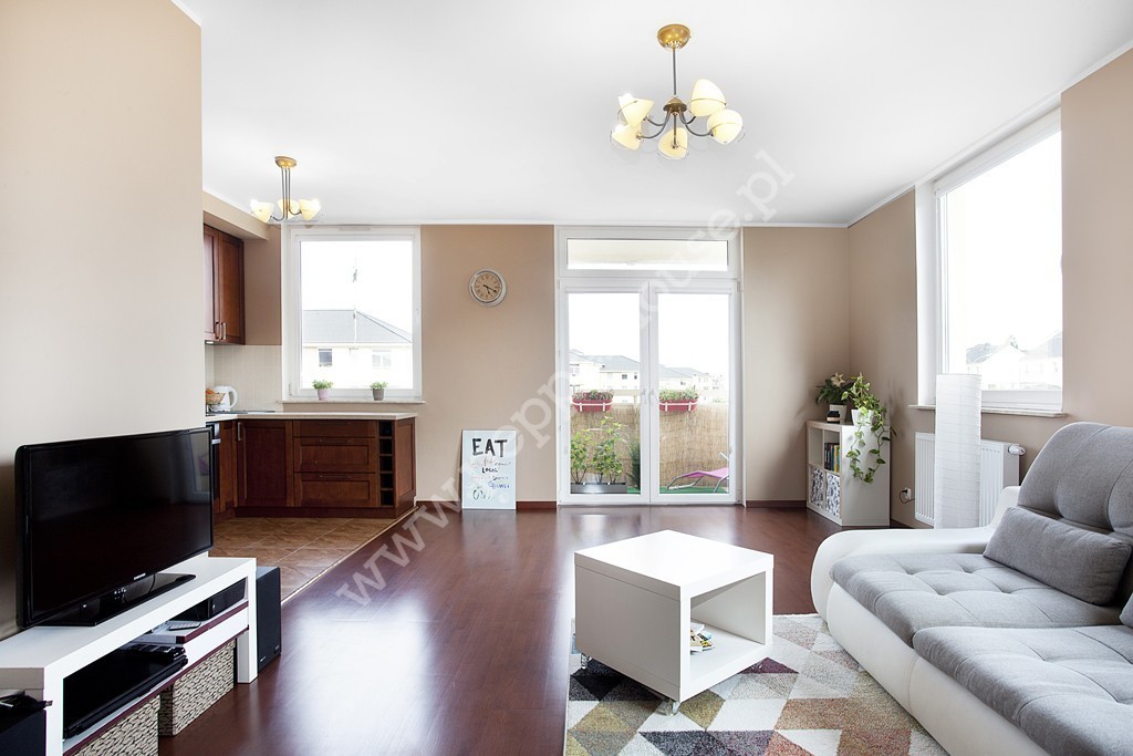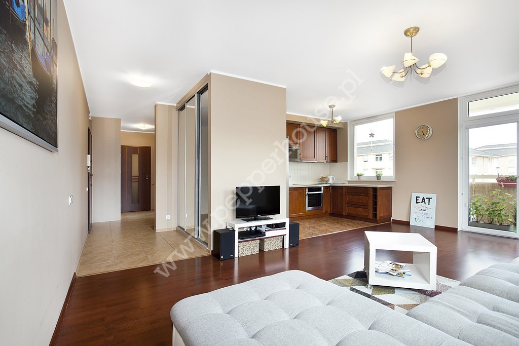 Lokal o powierzchni 69,7 m2 w dobrym standardzie, składa się z obszernego salonu z aneksem kuchennym (31,3 m2) i balkonem (4m2), dwóch sypialni (12,7 i 10m2), łazienki (5,7 m2), przedpokoju (10,9 m2). Mieszkanie posiada ekspozycję południowo-wschodnią, dzięki czemu jest jasne i słoneczne, co przekłada się na niskie koszty ogrzewania. Aneks kuchenny w pełni wyposażony, z dużą lodówką side by side Samsunga z dozownikiem wody i kostkarką lodu.