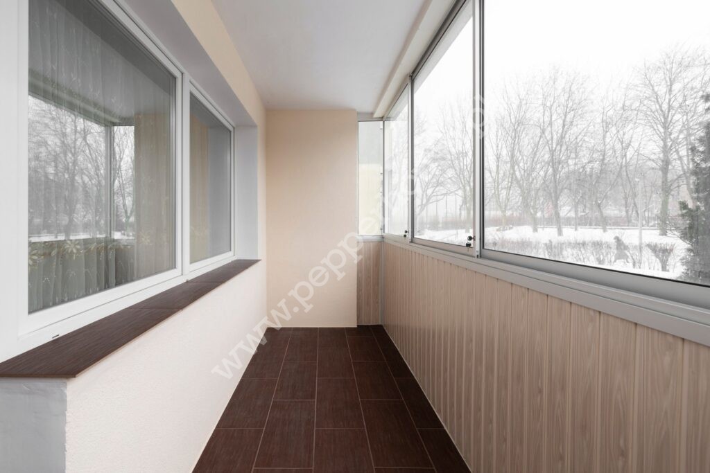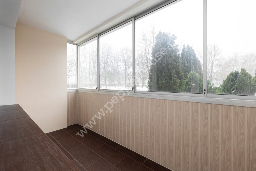 duży balkon z lekką, rozsuwaną zabudową chroniącą przed wiatrem i deszczem