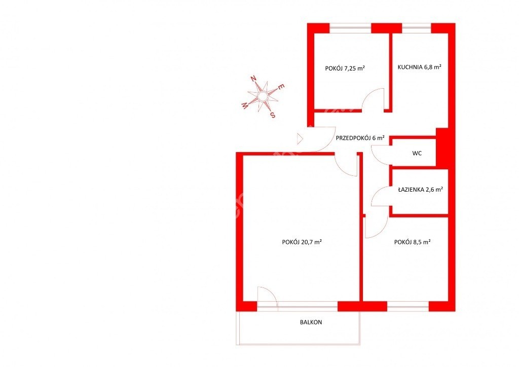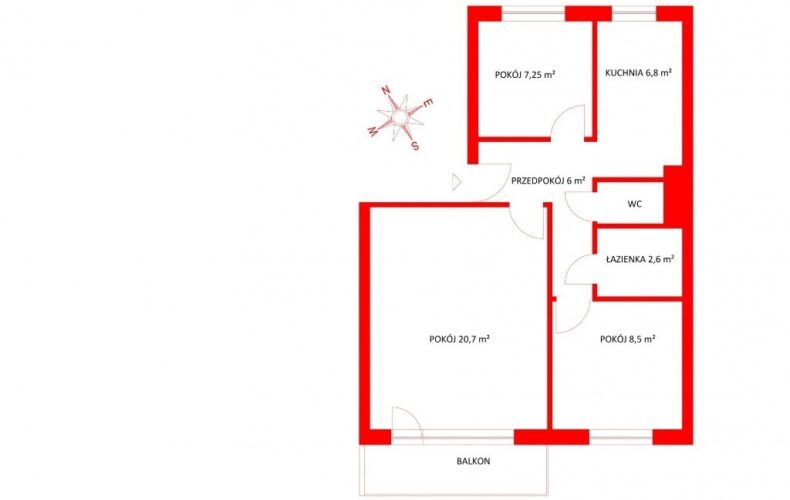 Sam lokal składa się z przestronnego i ustawnego salonu , oddzielnej kuchni z dużym oknem, dwóch pokoi, oddzielnej łazienki oraz wc