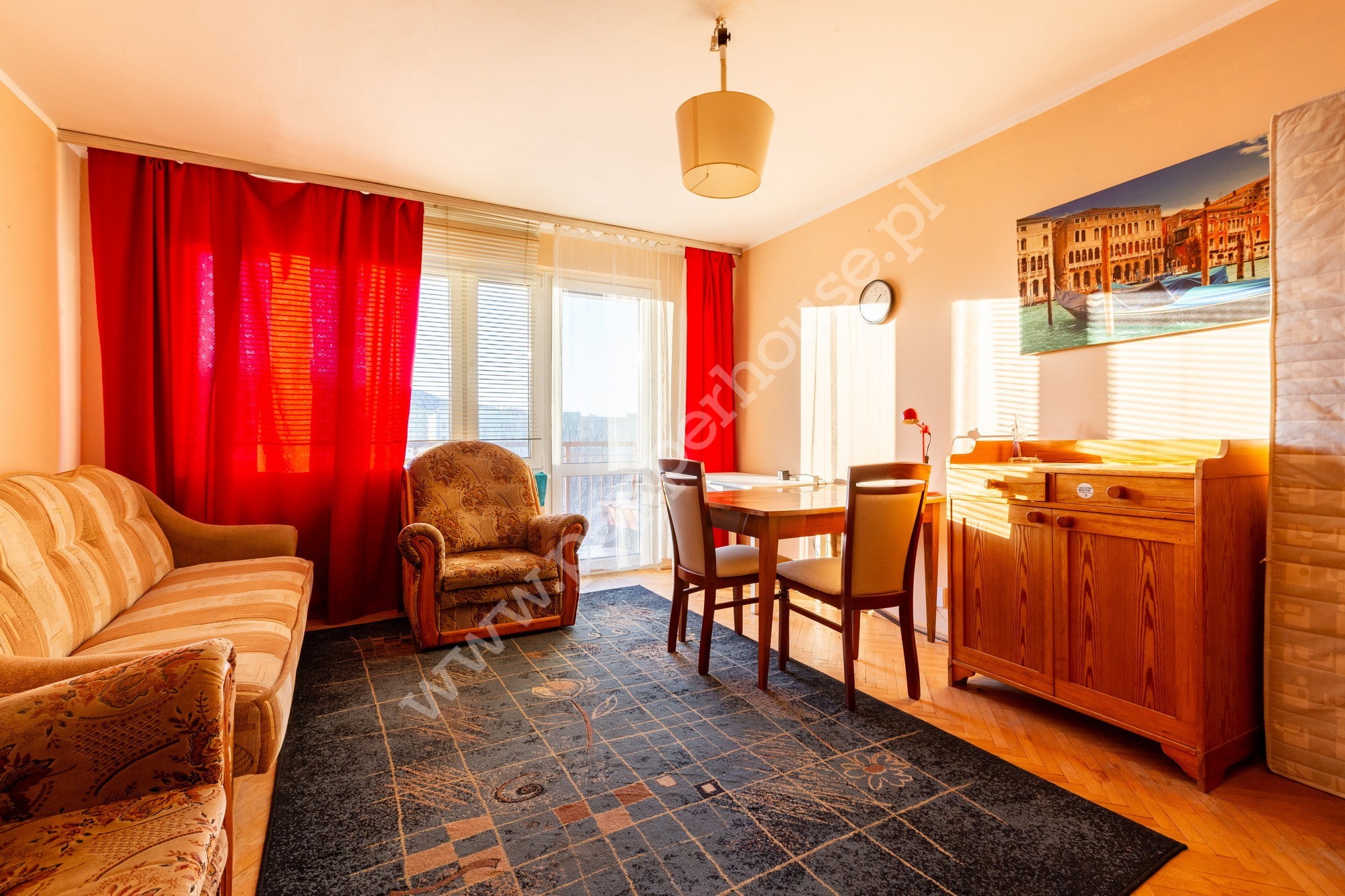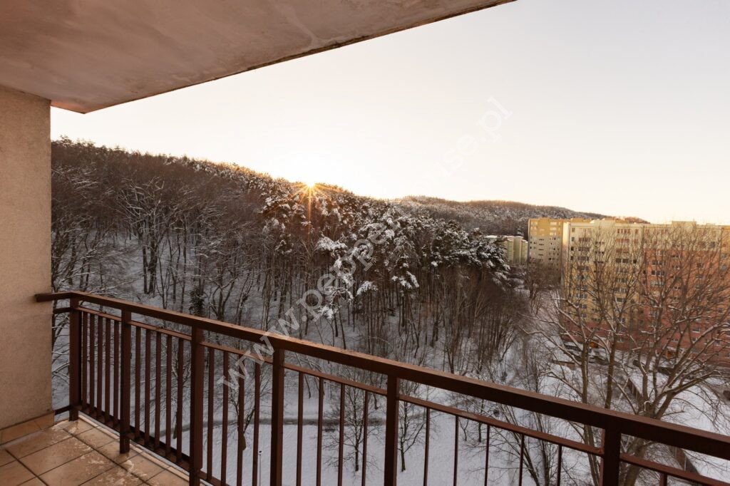 - Salon z wyjściem na balkon