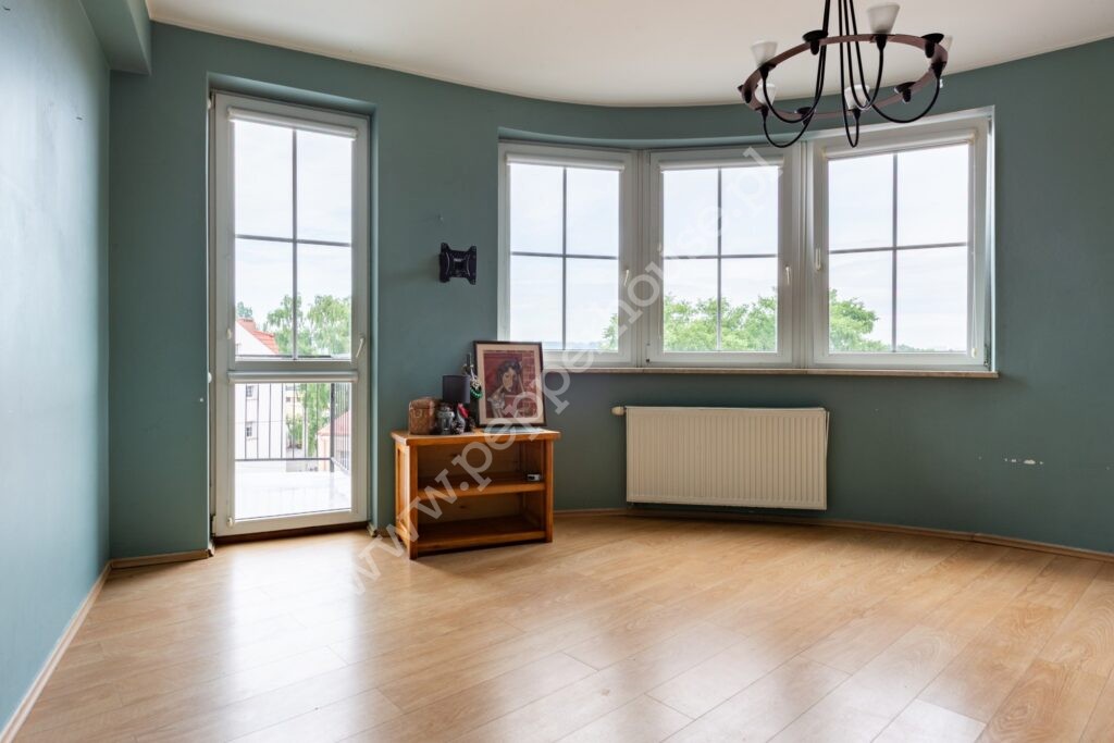 - Pokój dzienny – jasna, otwarta przestrzeń z bezpośrednim wyjściem na duży balkon.