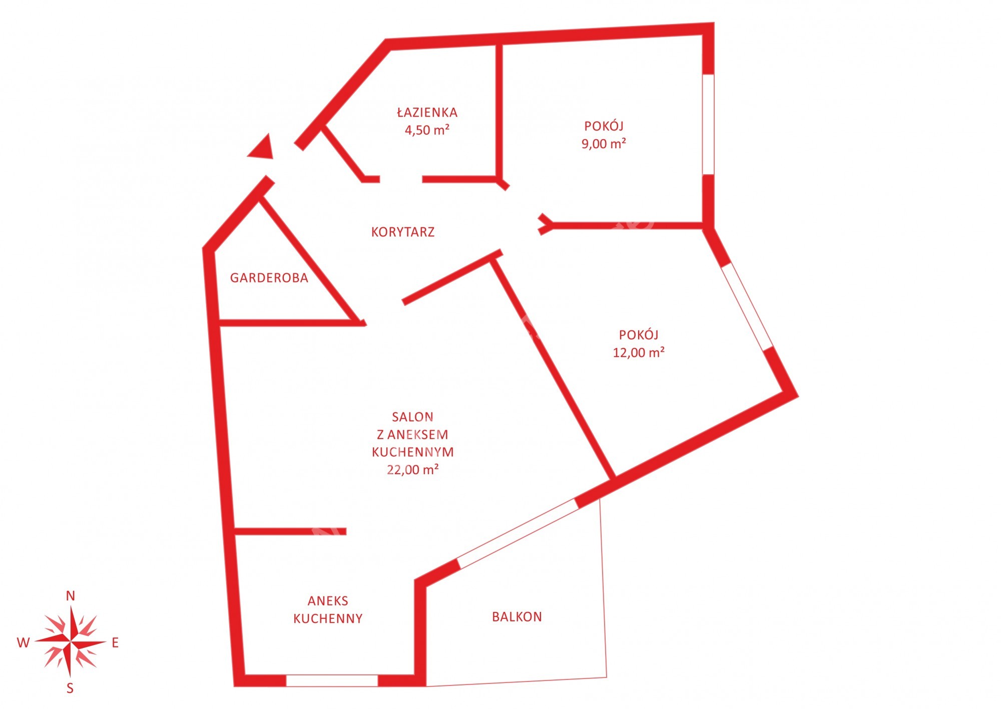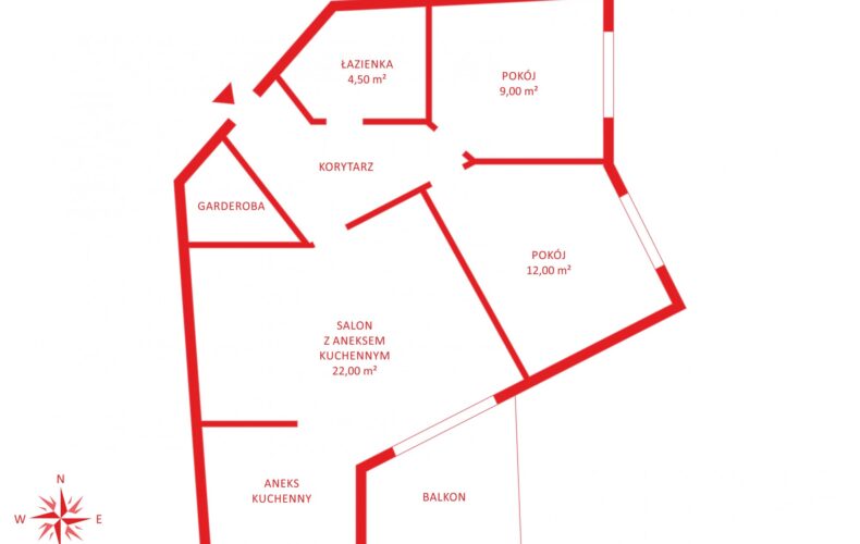 – salon z aneksem kuchennym (ok 22 m2) z wyjściem na balkon (10 m2) od strony południowo-wschodniej