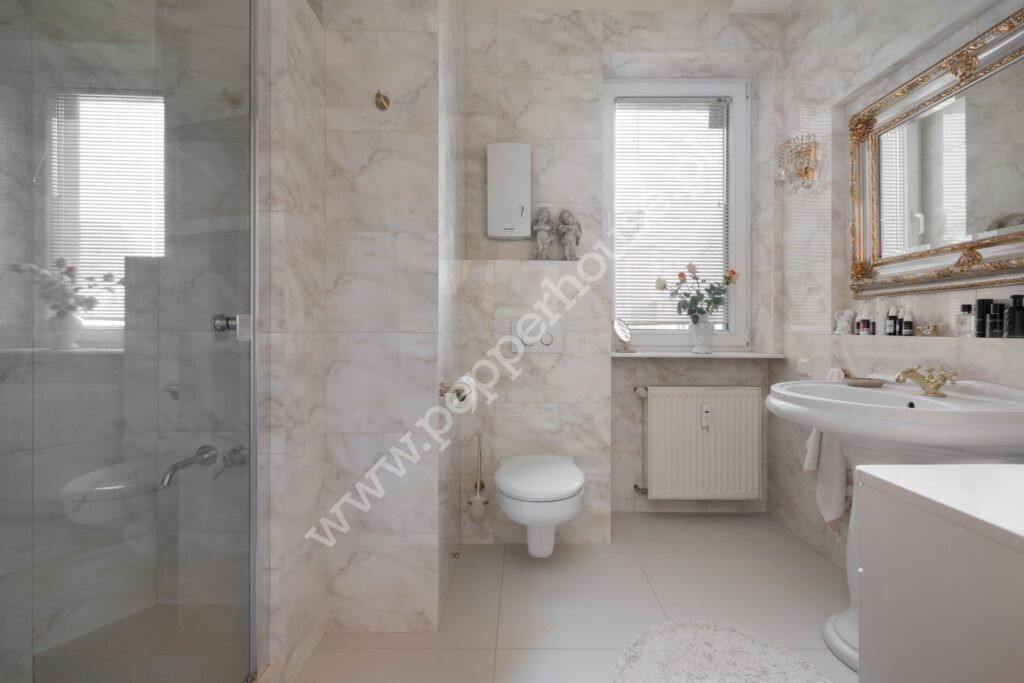 Mieszkanie przeszło generalny remont w 2000 roku, obejmujący: