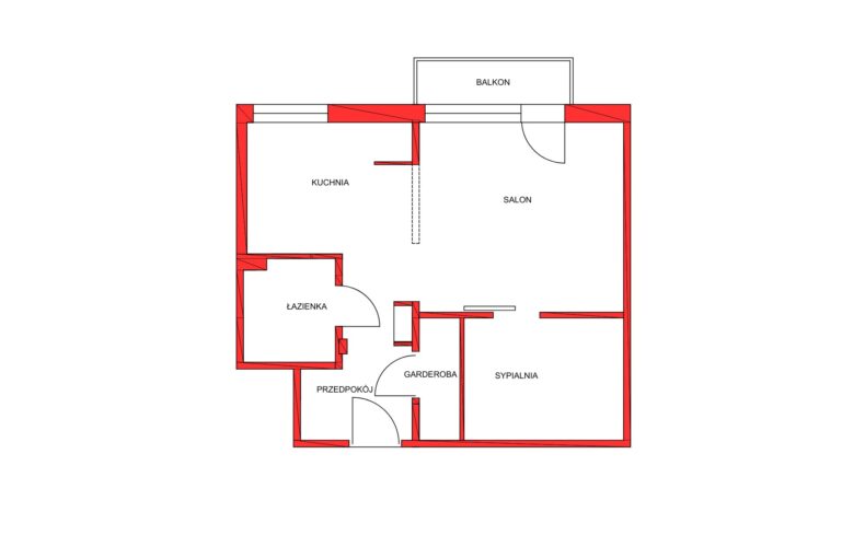 Mieszkanie składa się z przestronnego salonu z aneksem kuchennym, wydzielonej części sypialnianej oraz funkcjonalnej garderoby, która zapewnia dodatkową przestrzeń do przechowywania i pozwala utrzymać porządek w mieszkaniu. Całość uzupełnia nowoczesna łazienka z WC.