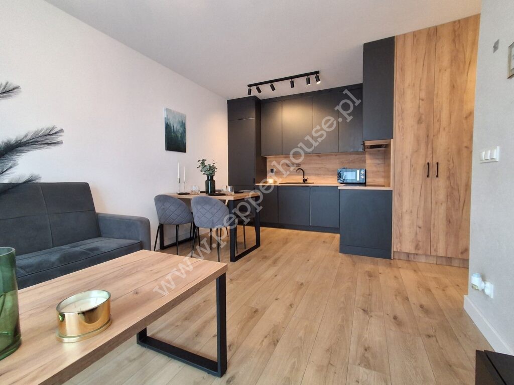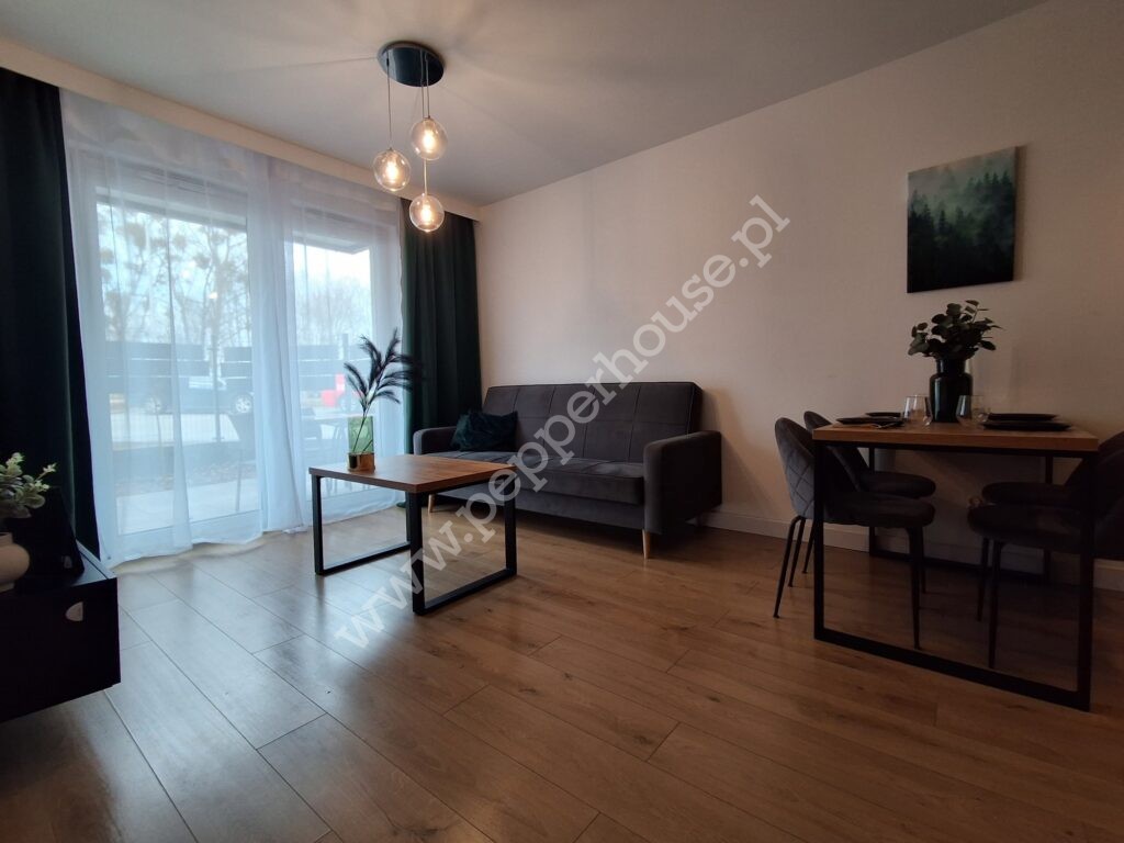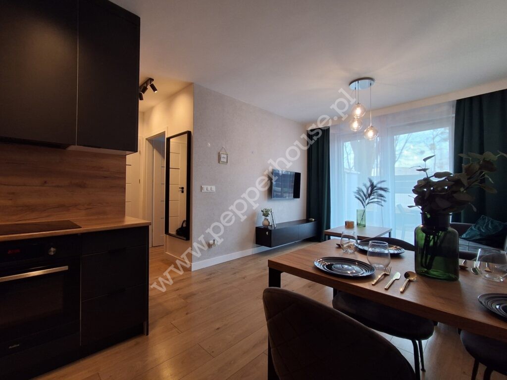 Mieszkanie jest w pełni umeblowane i wyposażone – gotowe do wprowadzenia bez dodatkowych nakładów.