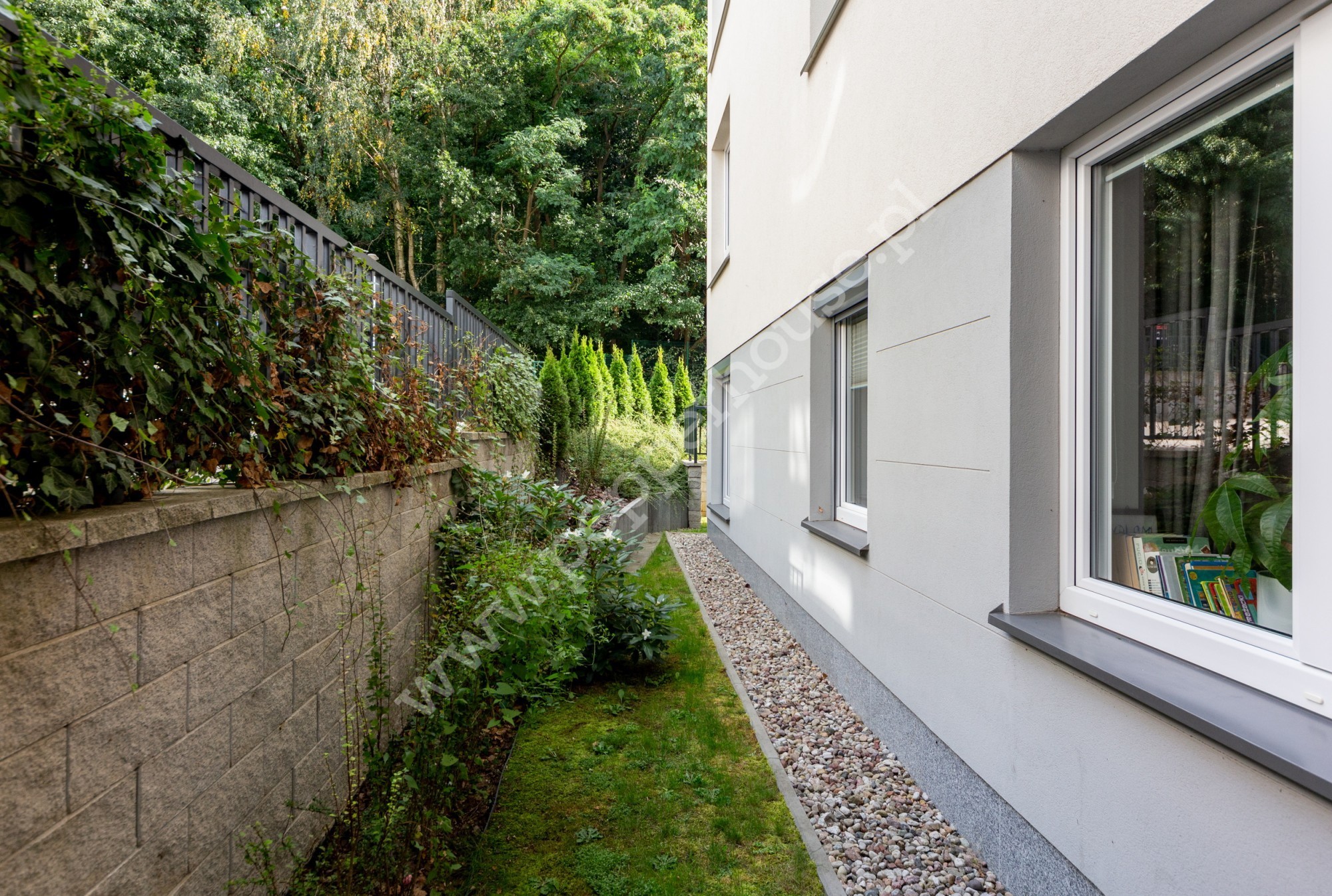 Nieruchomość znajduję się na parterze w kameralnym, trzypiętrowym budynku tuż przy lesie na osiedlu Bernadowo Park wybudowanym w 2016 roku. Ogrodzone, monitorowane z całodobową ochroną. Osiedle posiada bezpośrednie wyjście przez furtkę do lasu trójmiejskiego parku krajobrazowego. Na terenie osiedla ogólnodostępne miejsca parkingowe, zewnętrzna siłownia, kamienny grill oraz dużo terenów zielonych.