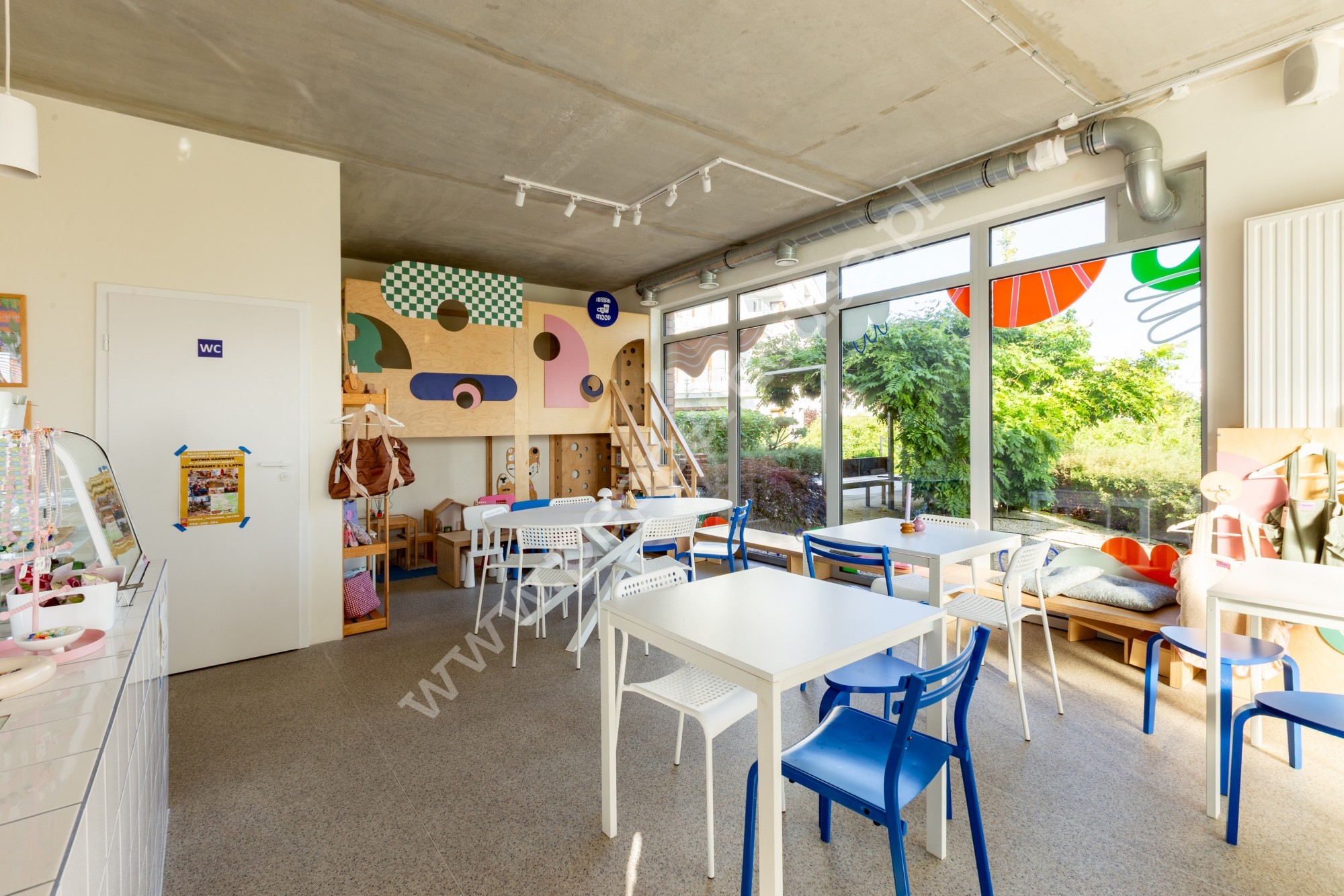 – Przemyślany układ – duże witryny, ogródek, strefa kawiarni i wyodrębniona przestrzeń dla dzieci.