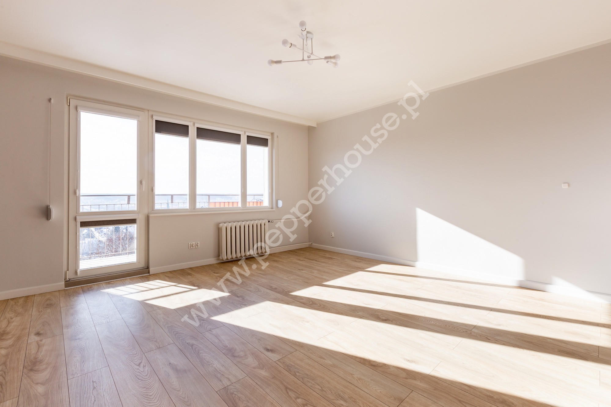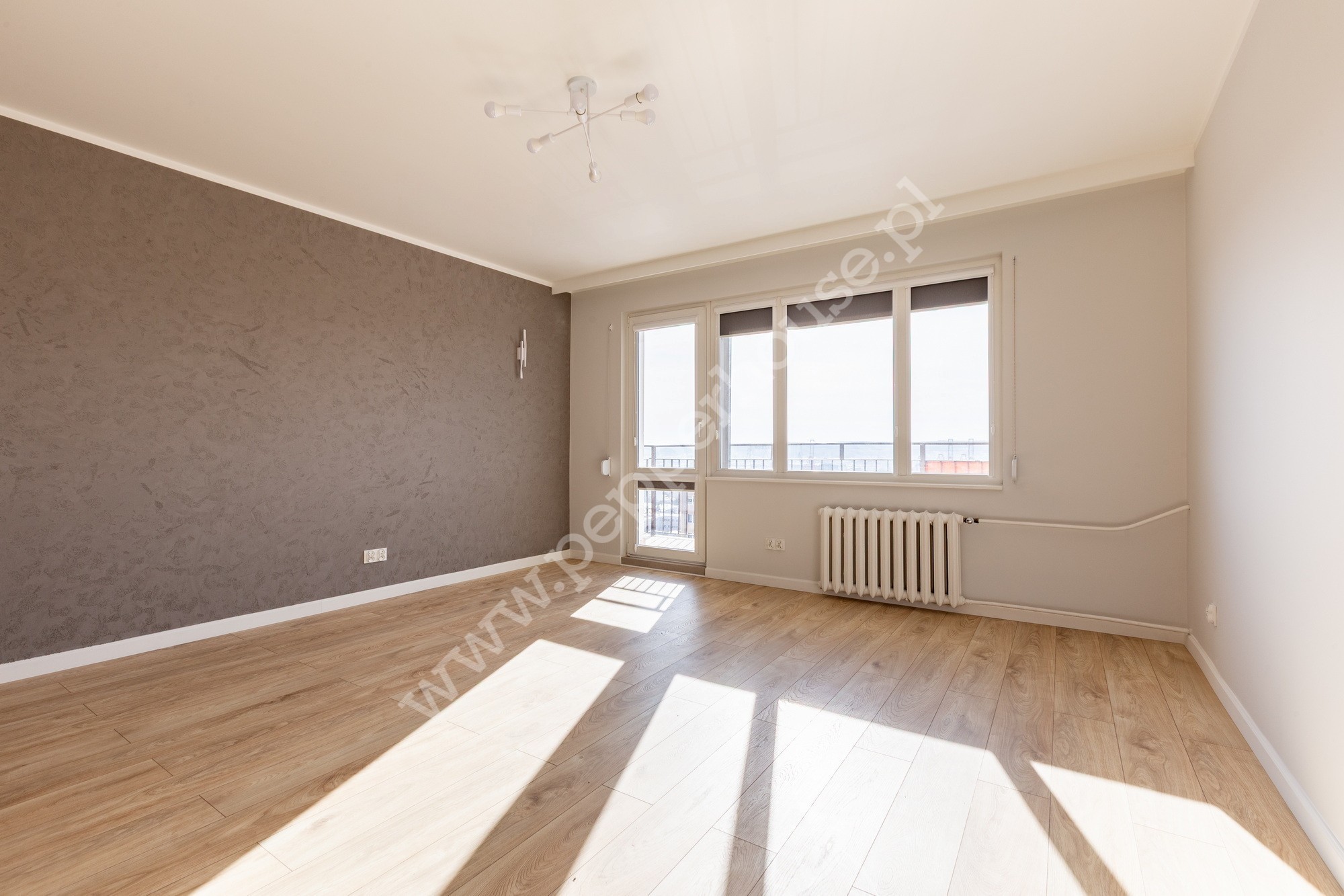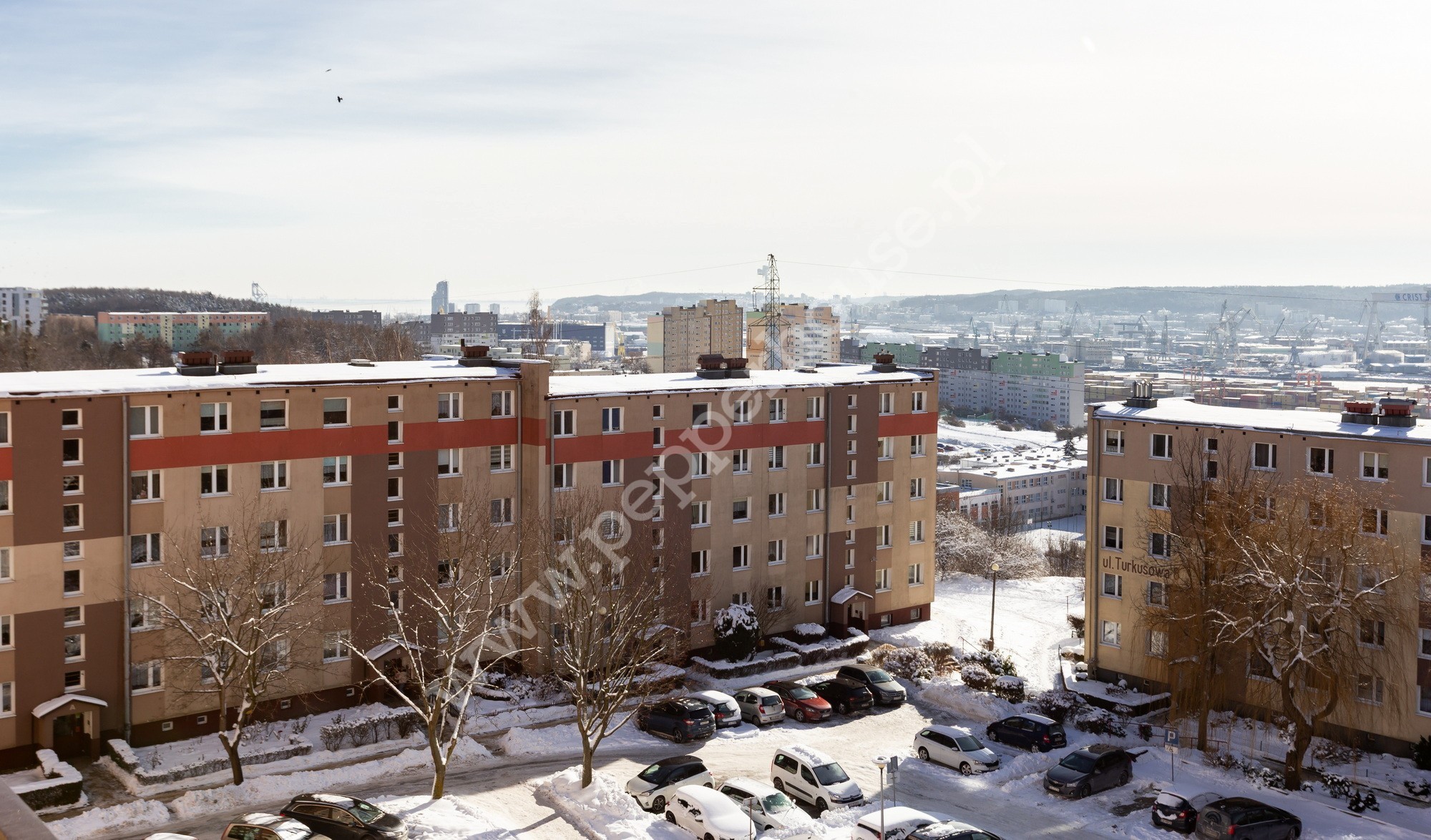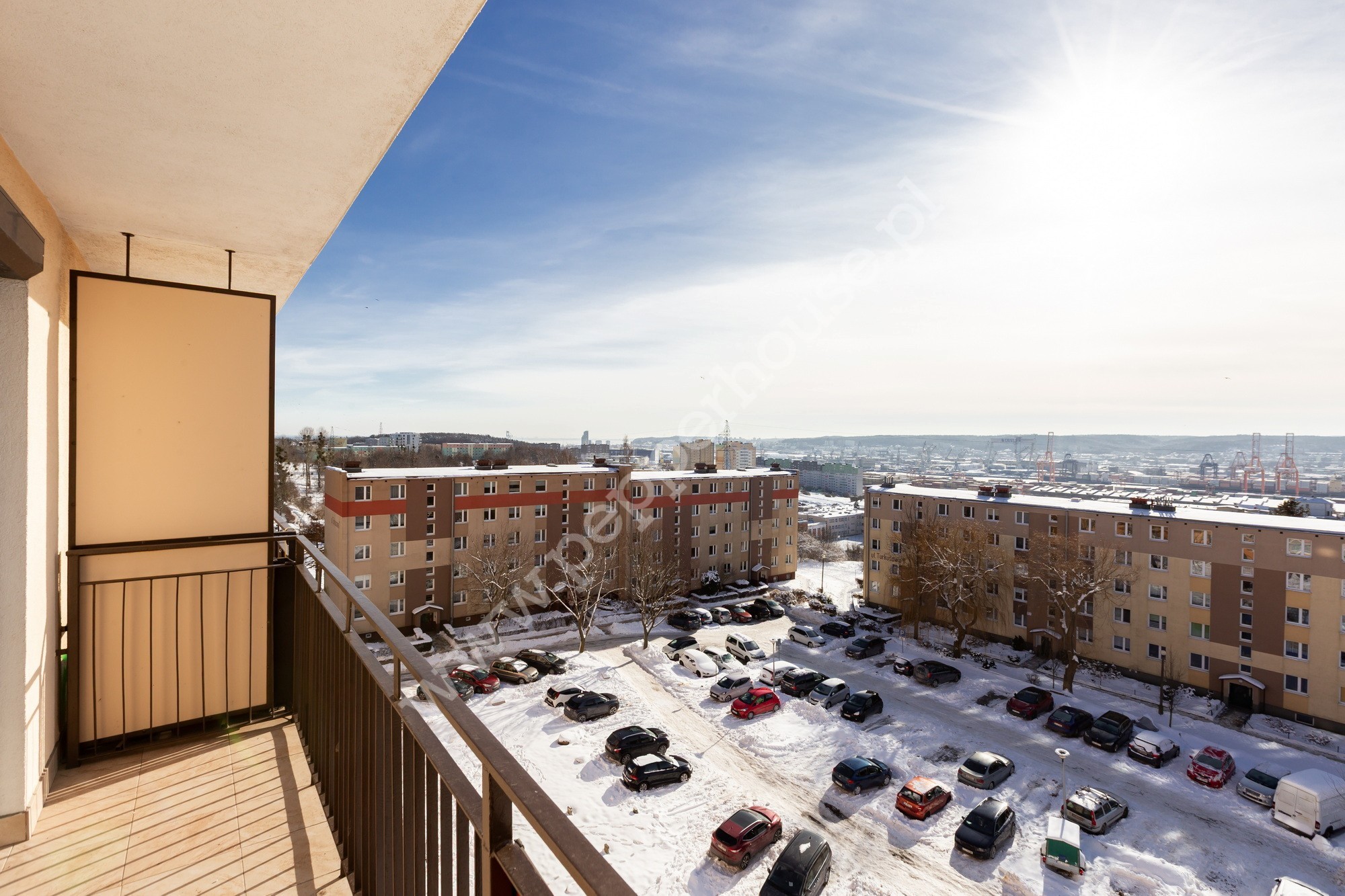 • Salon: przestronny, z wyjściem na balkon, rolety zewn./wewn., ekspozycja pd. (widok na Stocznię i Estakadę)