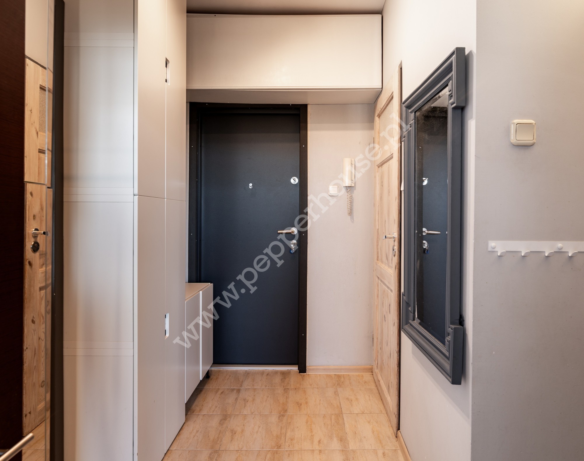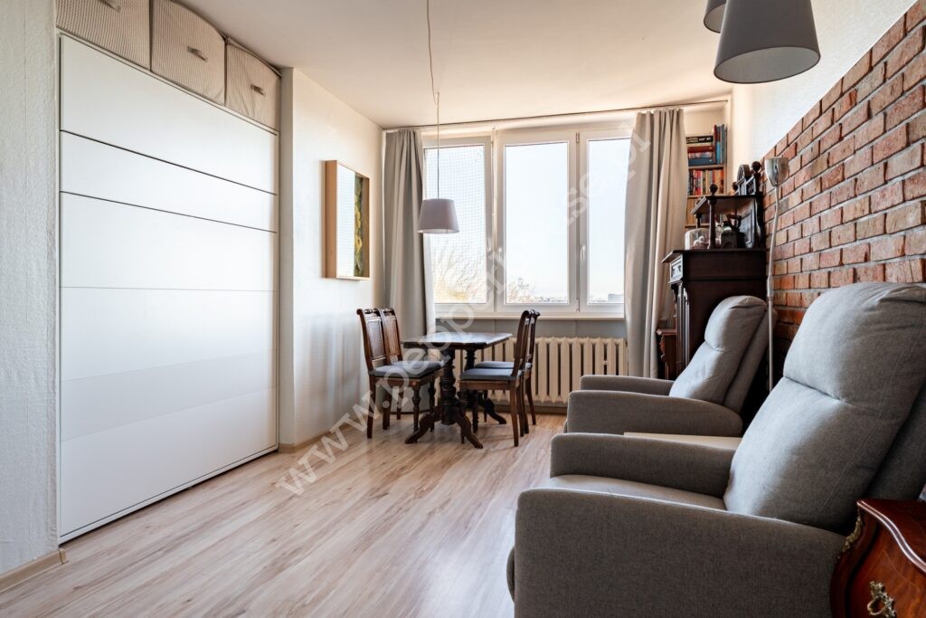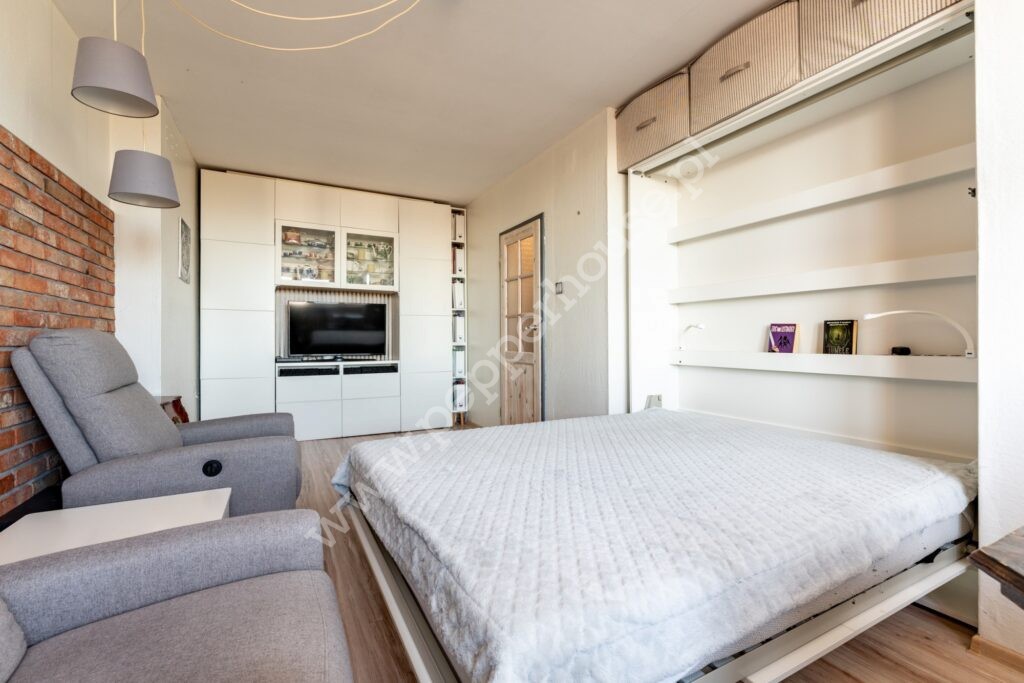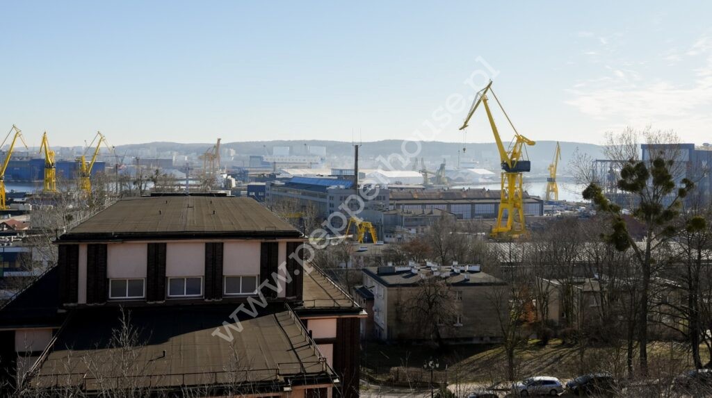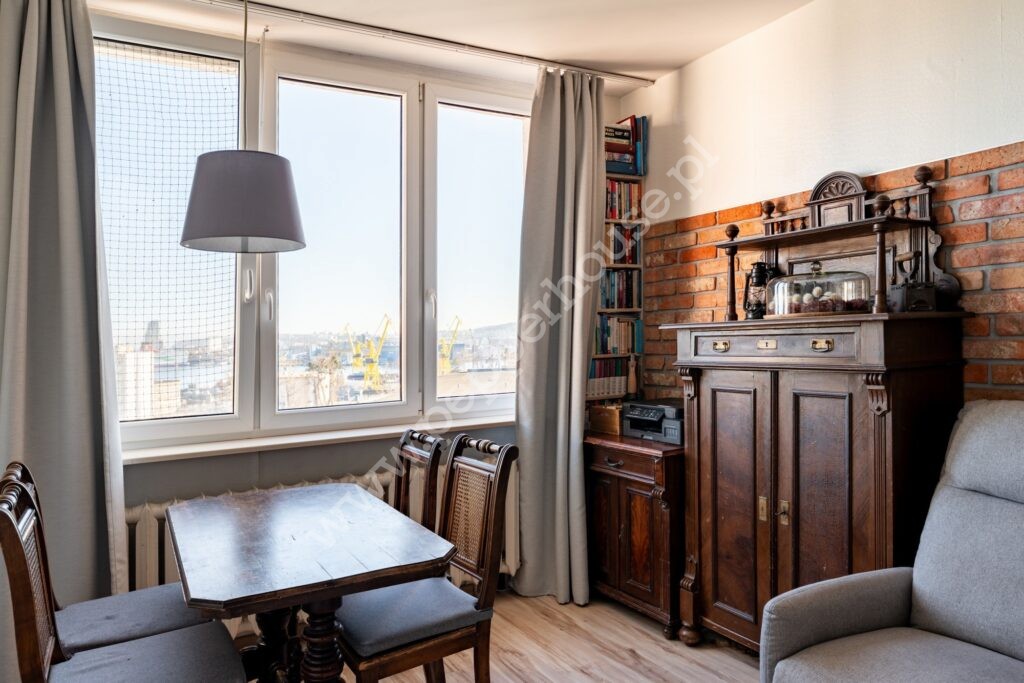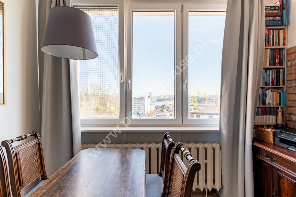 Mieszkanie położone jest na trzecim piętrze bloku mieszkalnego. Z okien pokoi rozpościera się charakterystyczny dla Gdyni portowy widok – woda basenu portowego, żółte dźwigi stoczniowe, Sea Towers