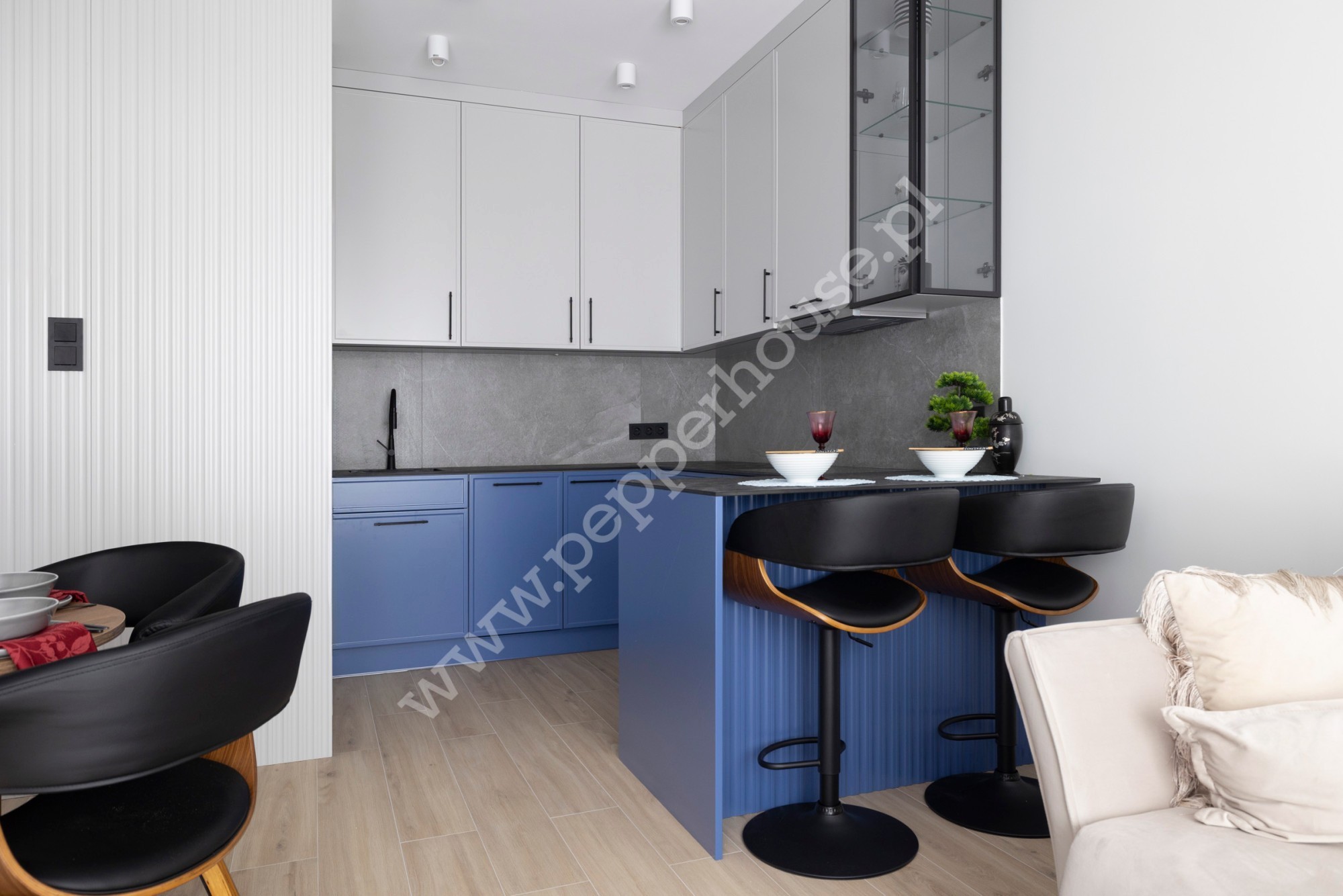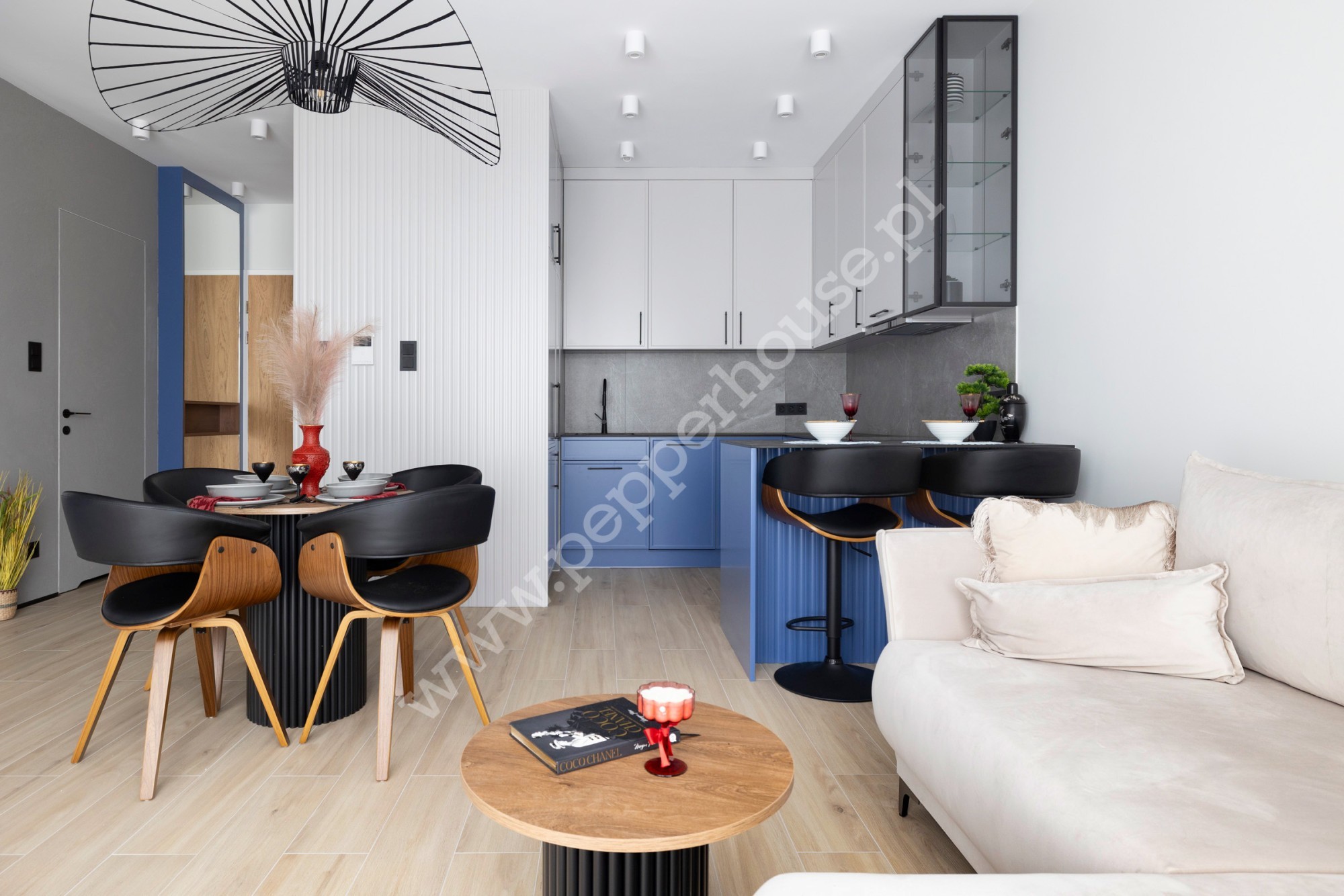 Ten luksusowy, 2-pokojowy apartament o powierzchni 48,74 m² znajduje się na parterze, kameralnej, trzypiętrowej willi miejskiej. Architektura obiektu stawia na elegancję i naturalne materiały, co w połączeniu z dużymi przeszkleniami nadaje wnętrzom luksusowego charakteru.