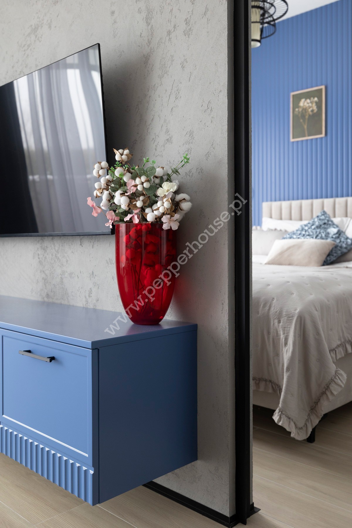 Sercem mieszkania jest jasny salon z aneksem kuchennym i jadalnią, z którego prowadzi wyjście na taras. Przestronna sypialnia zapewnia idealne miejsce do wypoczynku. Układ dopełnia nowoczesna łazienka oraz przedpokój z zabudową.