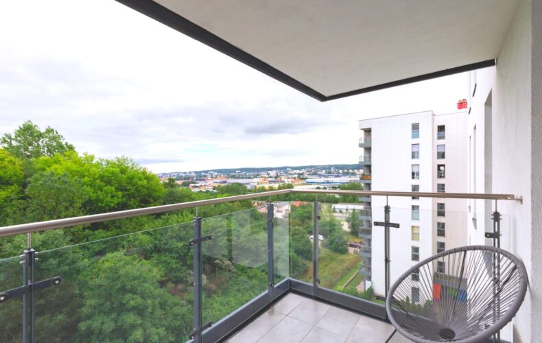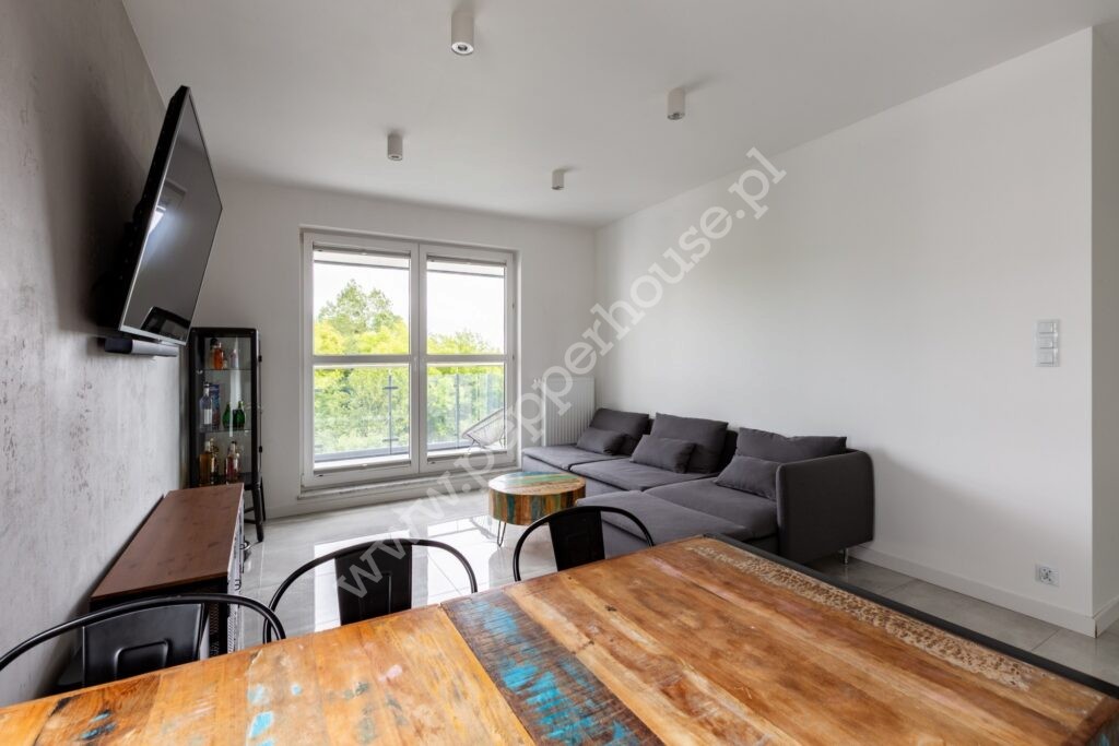 – Przestronny salon z aneksem kuchennym i wyjściem na duży balkon – miejsce idealne do wypoczynku