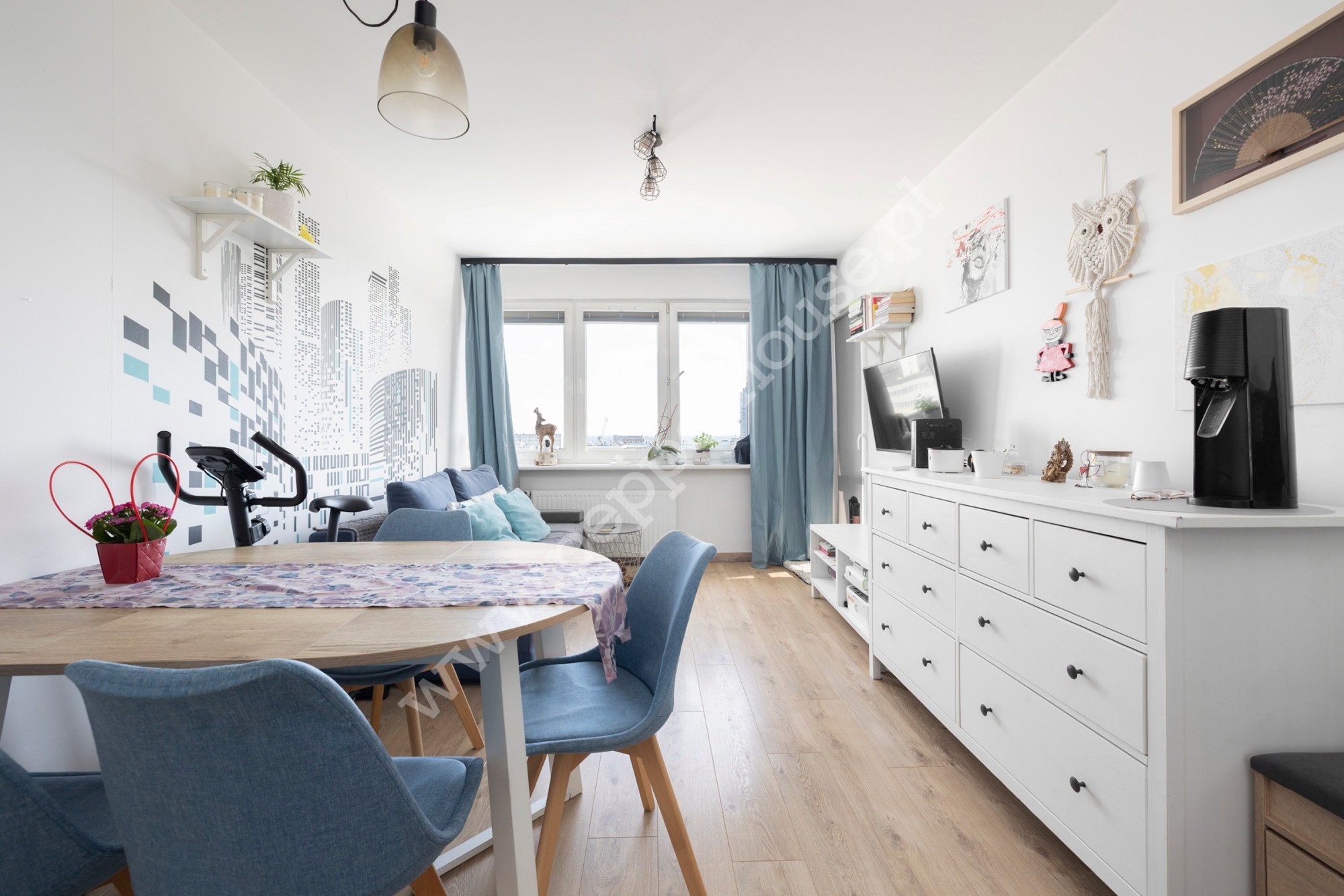 Wnętrze wykończone zostało z dbałością o detale – na podłogach znajdują się nowoczesne, wodoszczelne panele. Okna mieszkania skierowane są na wschód, co zapewnia dobre doświetlenie wnętrza.