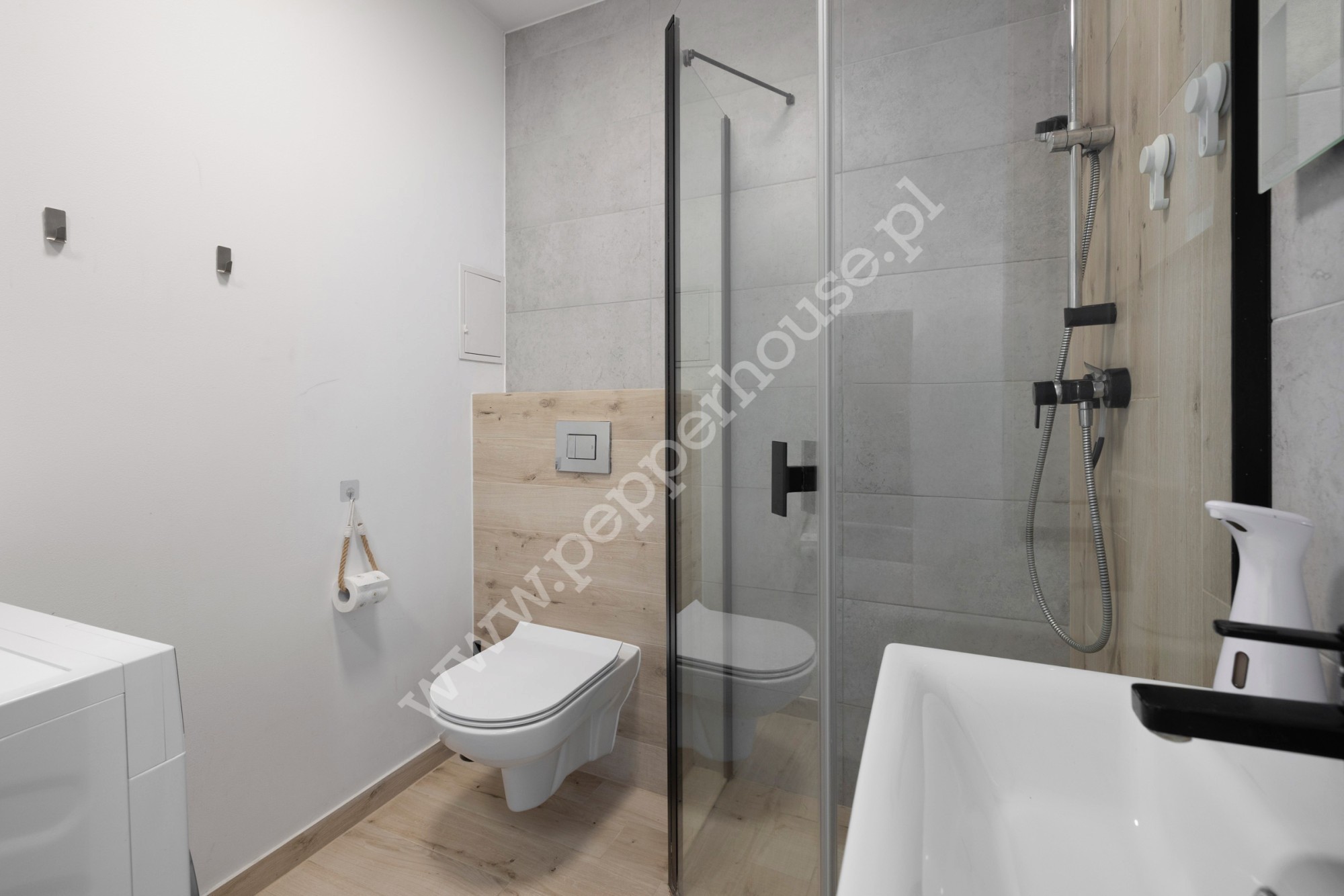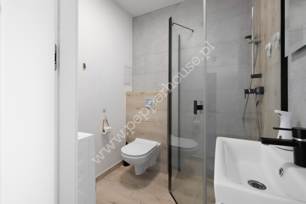 -łazienka z kabiną prysznicową i WC,