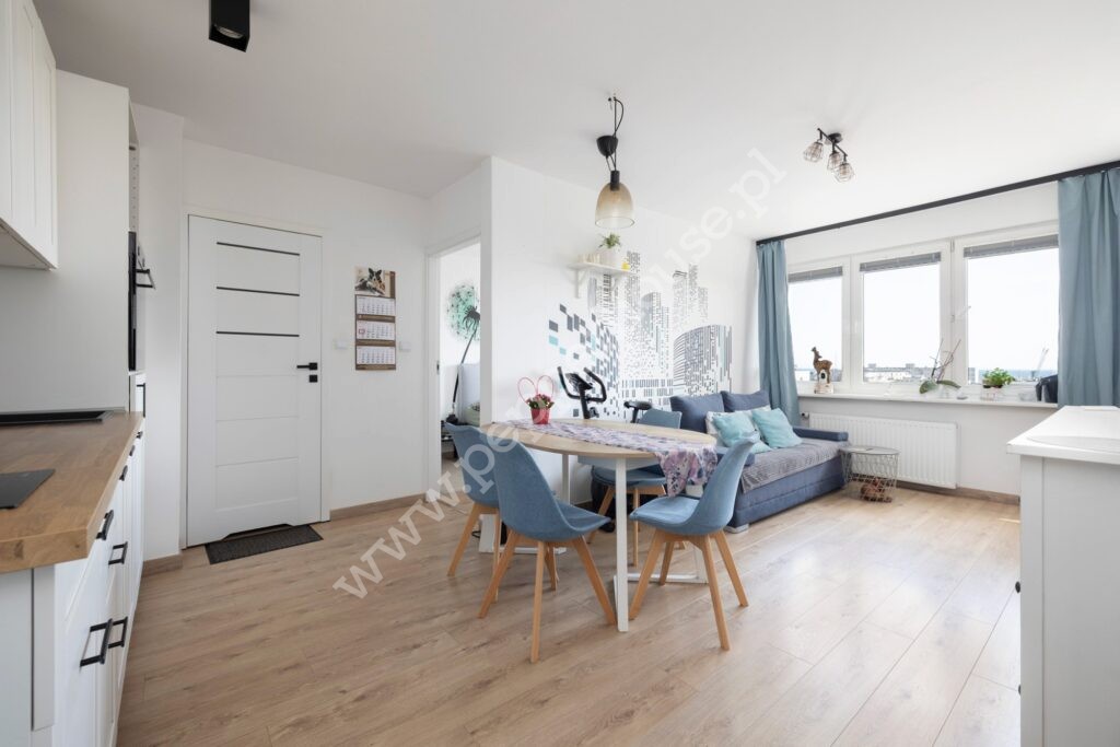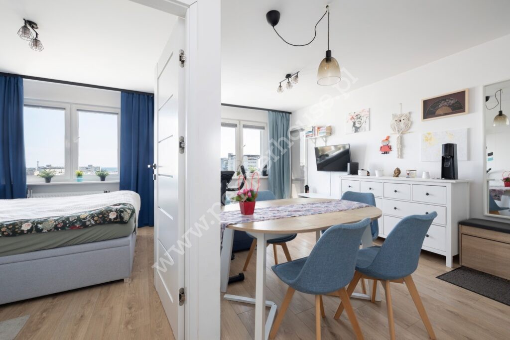 Atrakcyjne, 2-pokojowe mieszkanie o powierzchni 33 m² usytuowane jest na IX piętrze budynku, z którego rozpościera się widok na Zatokę oraz panoramę miasta. Lokal przeszedł generalny remont i jest gotowy do zamieszkania.