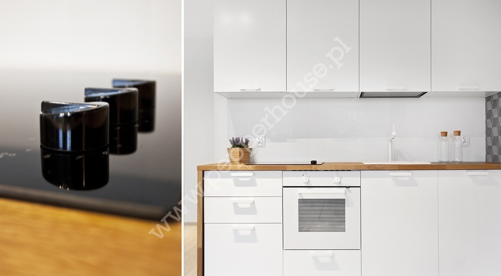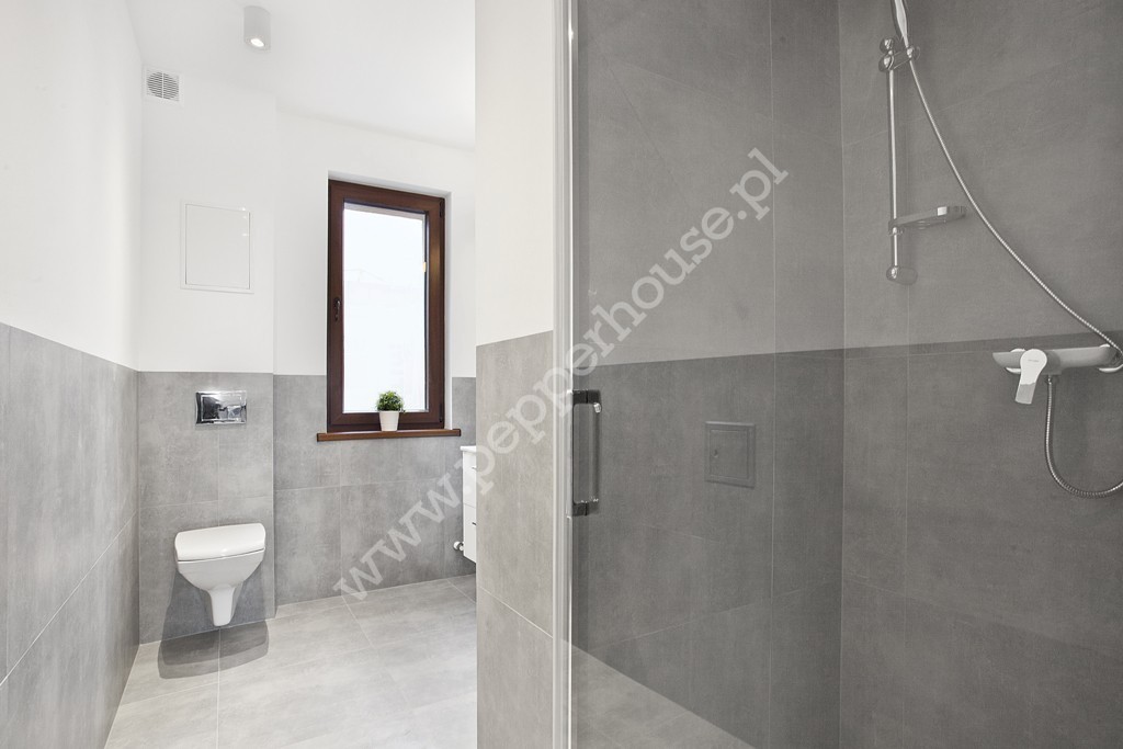 Kuchnia jest pełni wyposażona (lodówka, płyta grzewcza, piekarnik), łazienka posiada obszerną kabinę prysznicową, umywalkę i toaletę.