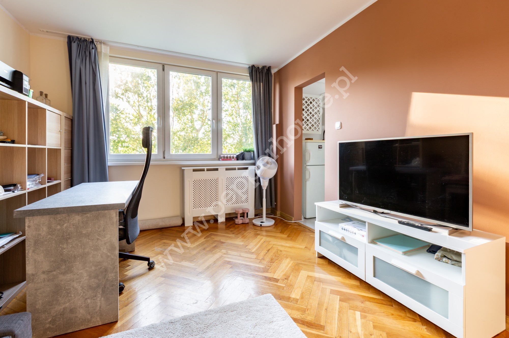 - Przestronny salon, pełniący także funkcję sypialni, z możliwością wydzielenia komfortowej strefy do pracy – z okien rozpościera się kojący widok na otaczającą zieleń.