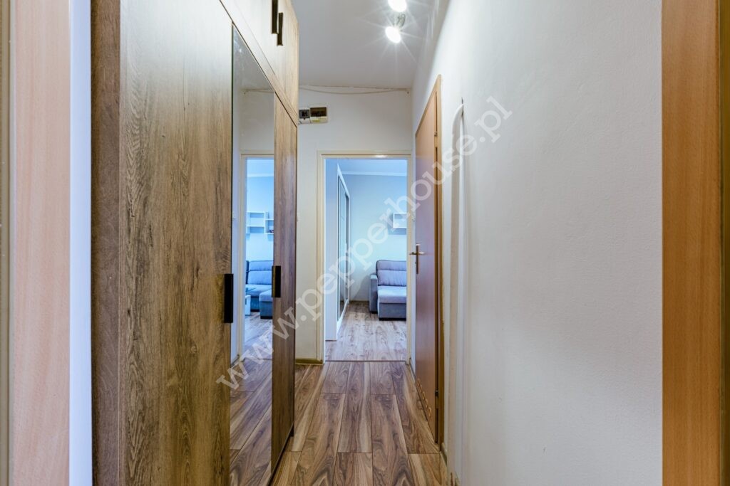 Mieszkanie jasne, ciepłe, ekspozycja okien południowo-zachodnia, mieszkanie w pełni wyposażone, gotowe do zamieszkania . W kuchni: płyta gazowa, piekarnik elektryczny, lodówka z zamrażalką, czajnik elektryczny, mikrofalówka.W salonie rozkładana dwuosobowa sofa, duża szafa z lustrem, stolik na wino z lampką nocną, stolik kawowy, Telewizor LG Led 50cali. W sypialni szafa, komoda z lustrem, szafka nocna, oraz duże komfortowe łóżko 180×200. W łazience prala.