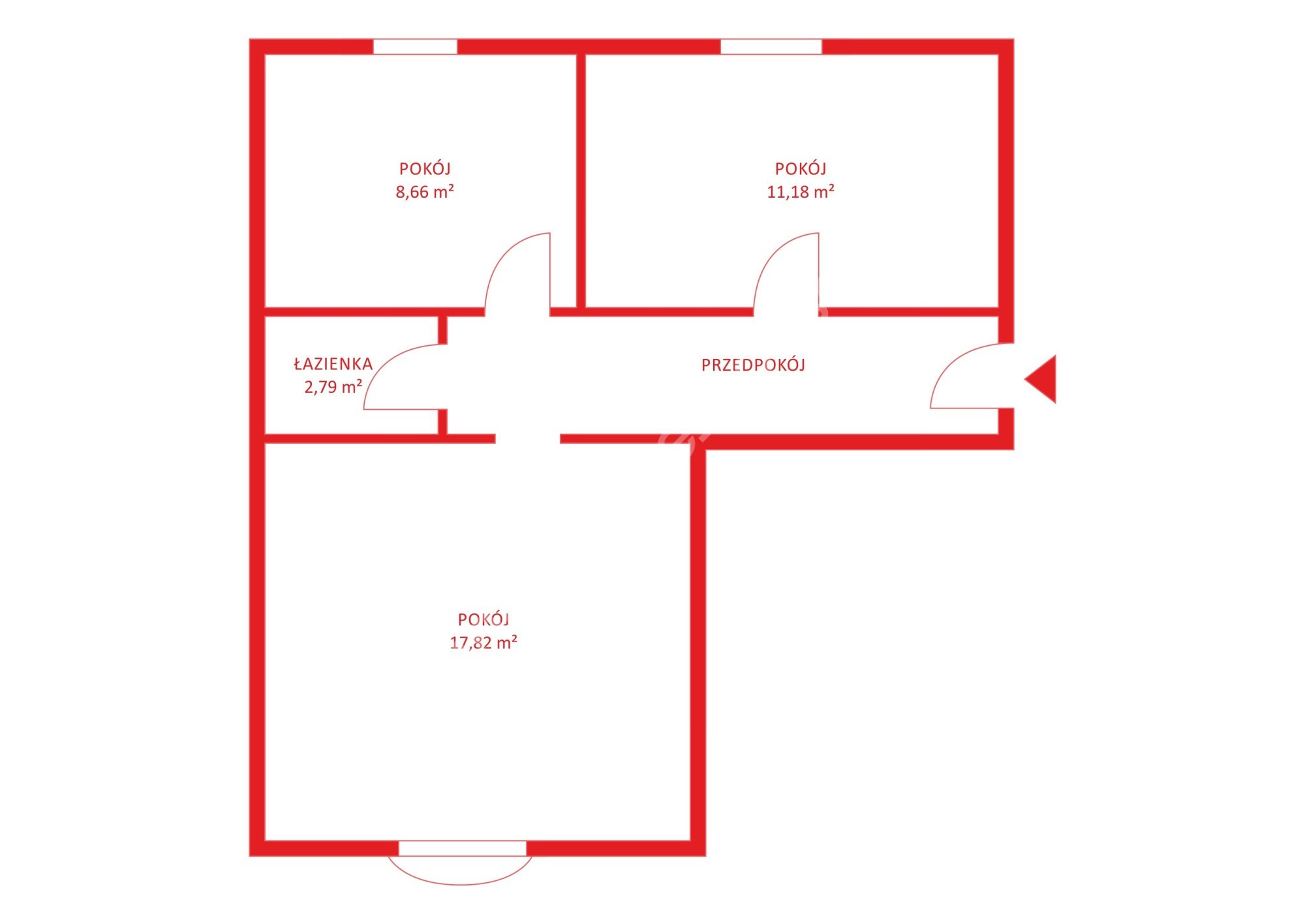 Powierzchnia całkowita mieszkania to 47 m2