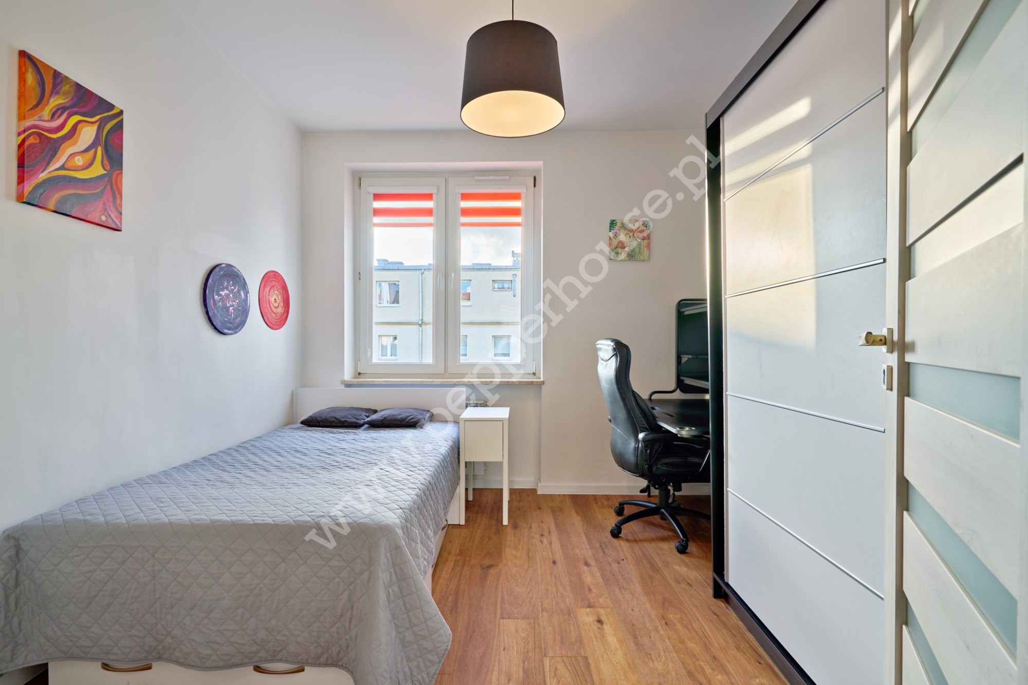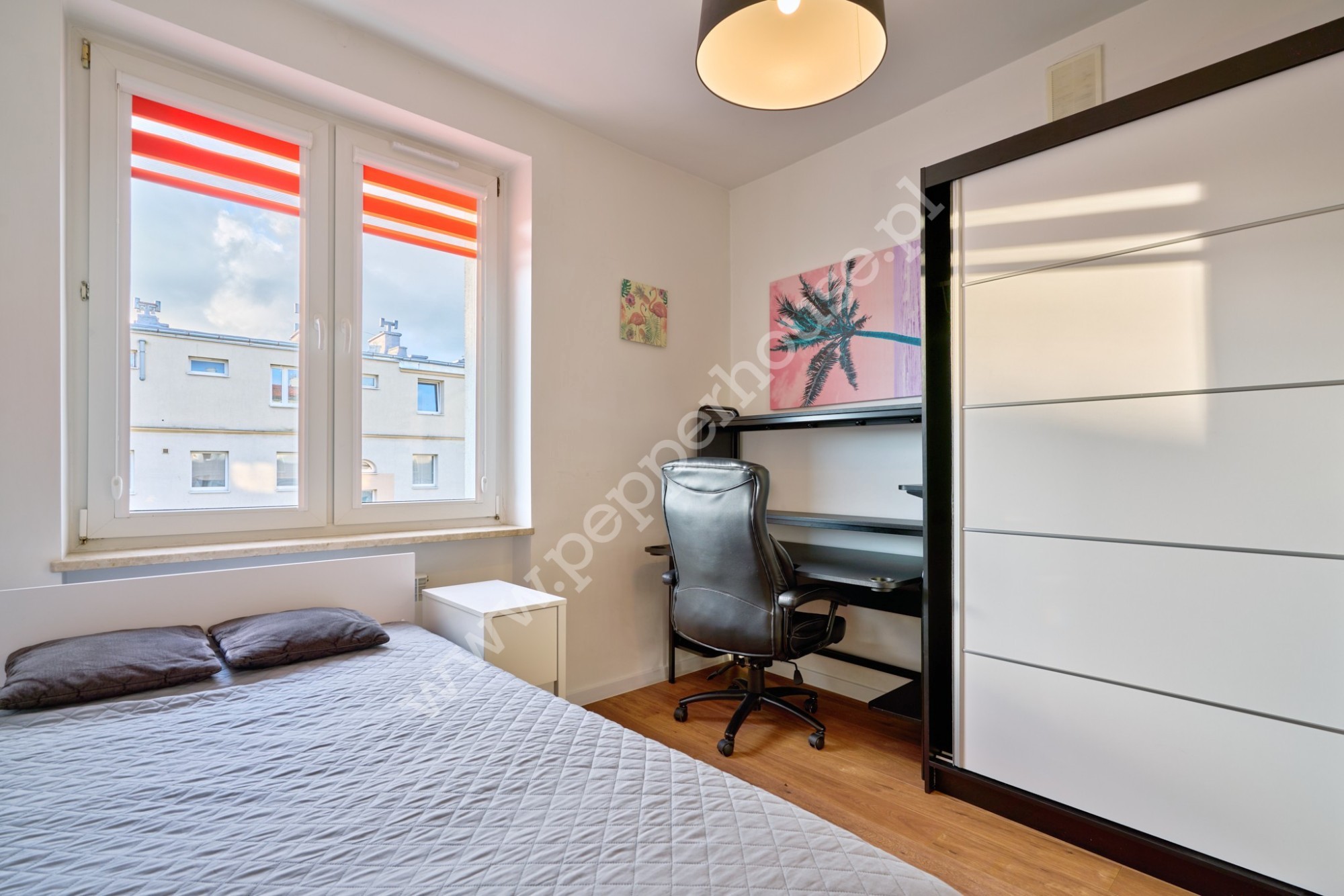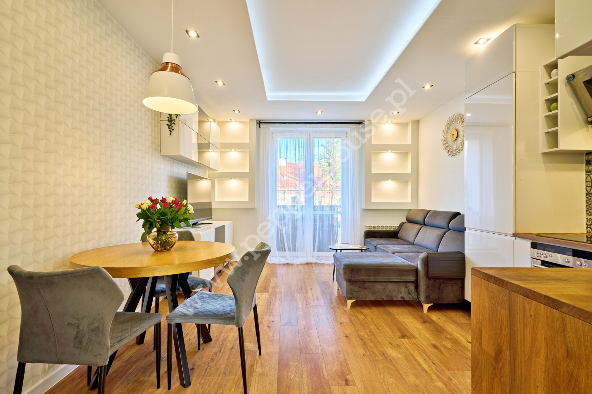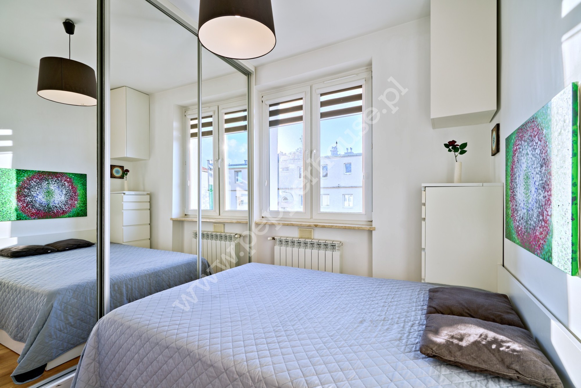 • Balkon wenecki z dwuskrzydłowymi drzwiami, zapewniający wyjątkowy klimat wnętrza,
