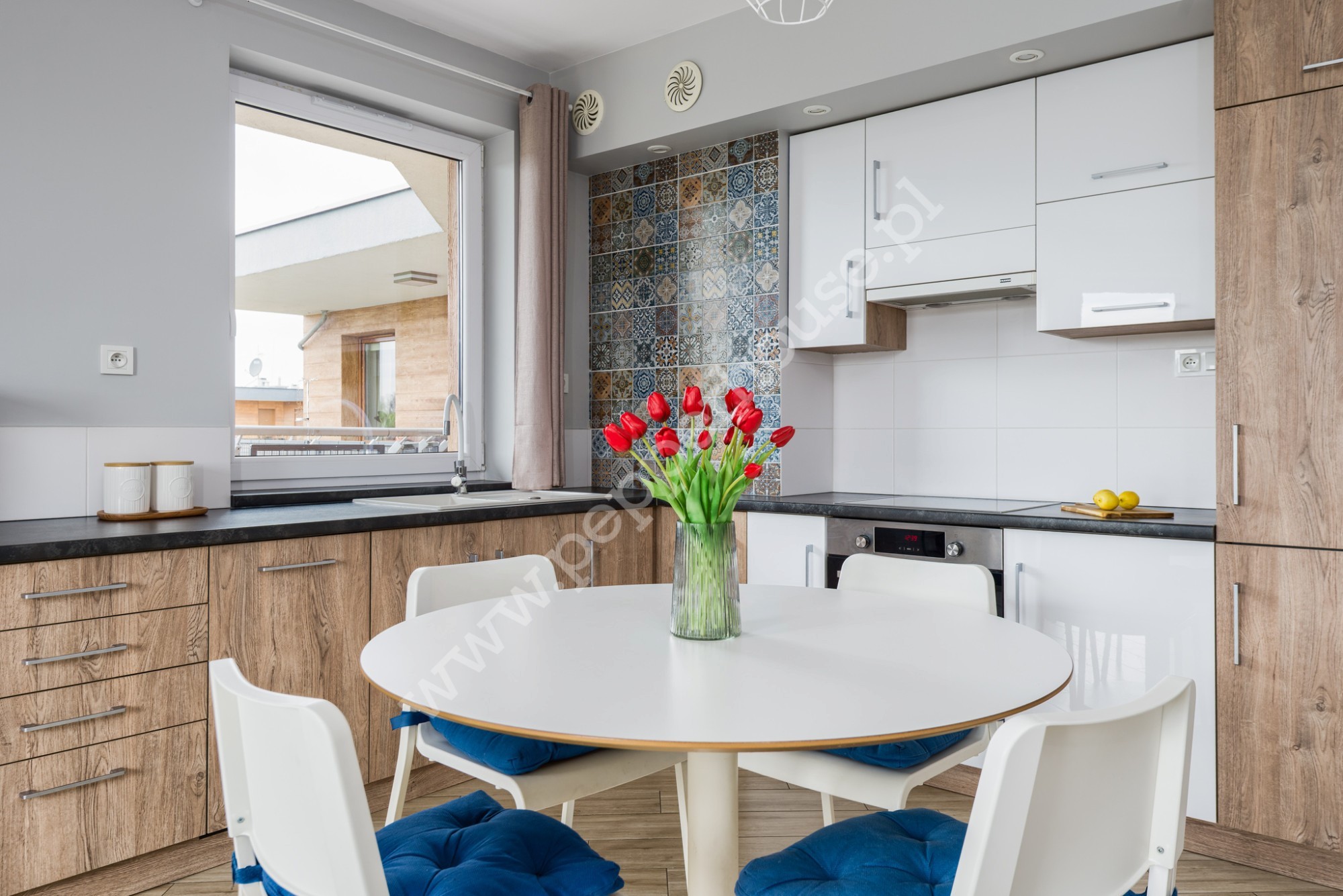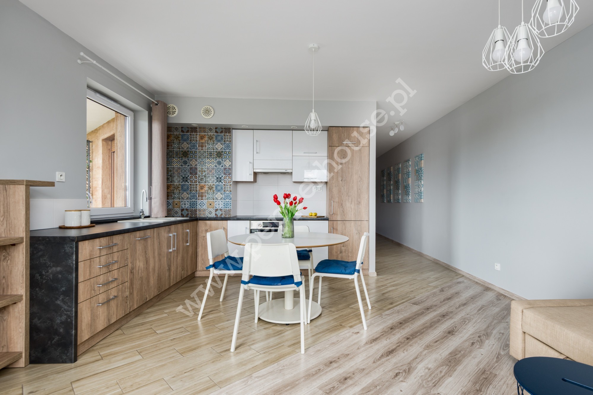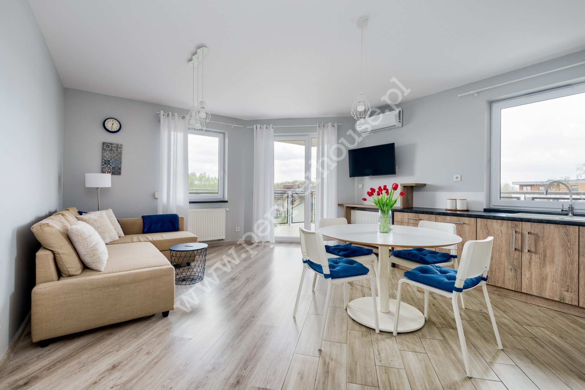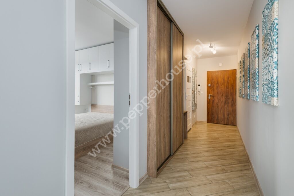 Wnętrza zostały zaprojektowane z dbałością o funkcjonalność i wykończone wysokiej jakości materiałami. Mieszkanie jest w pełni umeblowane oraz wyposażone w sprzęt AGD.