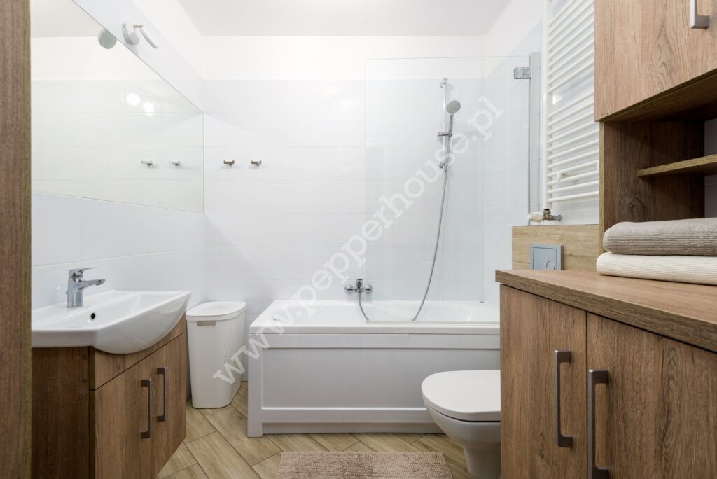 Łazienka z WC: Funkcjonalna, z pralką na wyposażeniu.