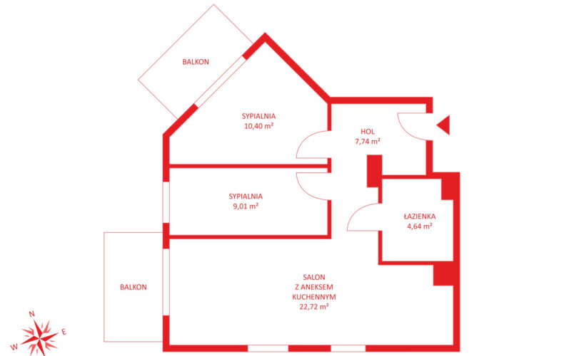 Proponowane mieszkanie ma 54,51m2,3 pokoje z dwoma balkonami i położone jest na 6 piętrze.