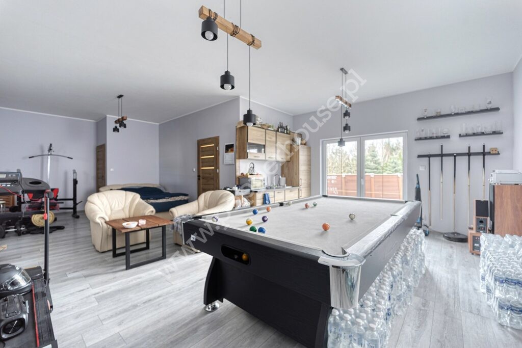Prywatne SPA i Hobby: Na działce znajduje się murowany domek hobby (60 m2), a w nim: sala bilardowa, siłownia, sauna, łazienka i kuchnia letnia.