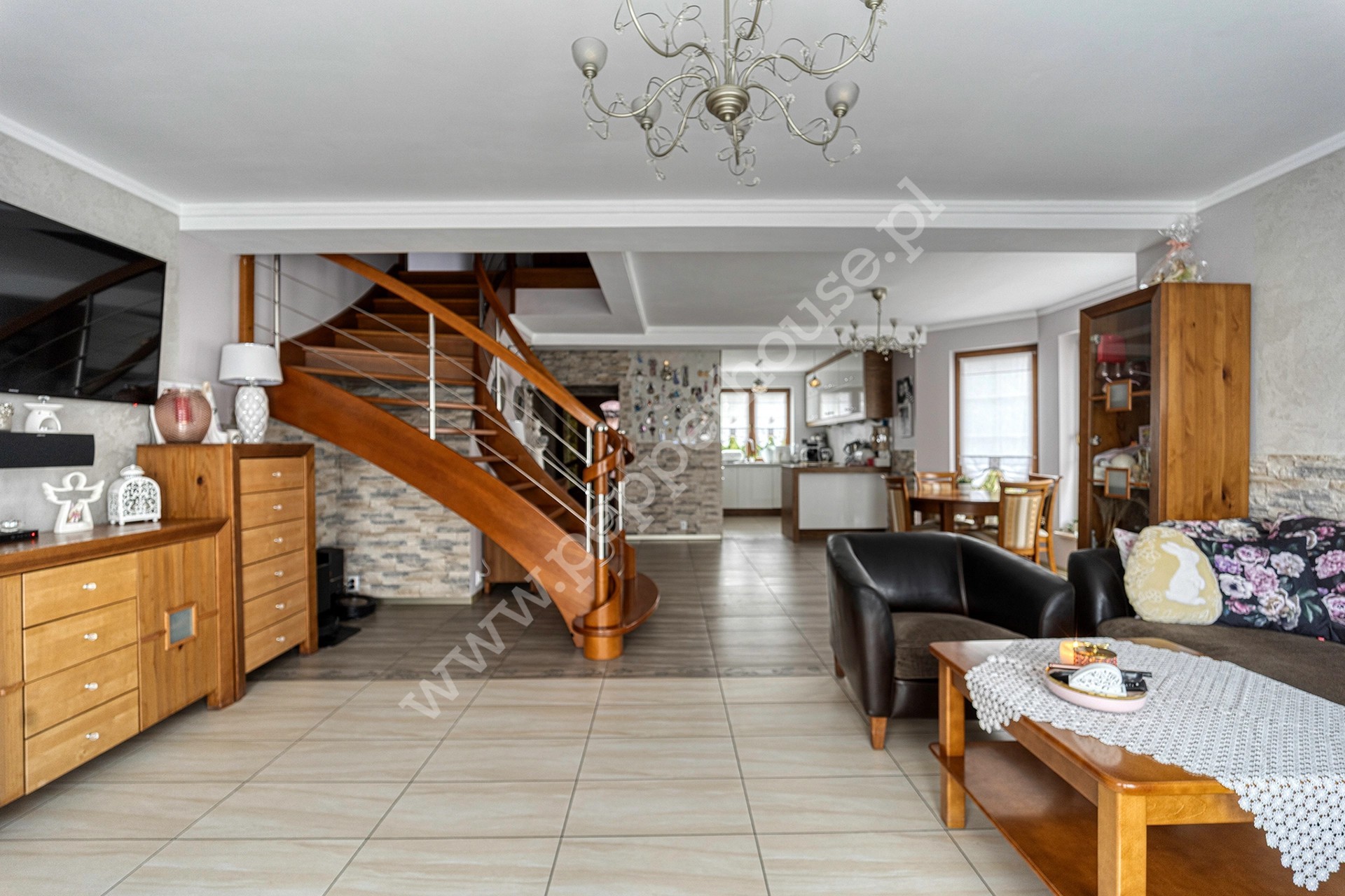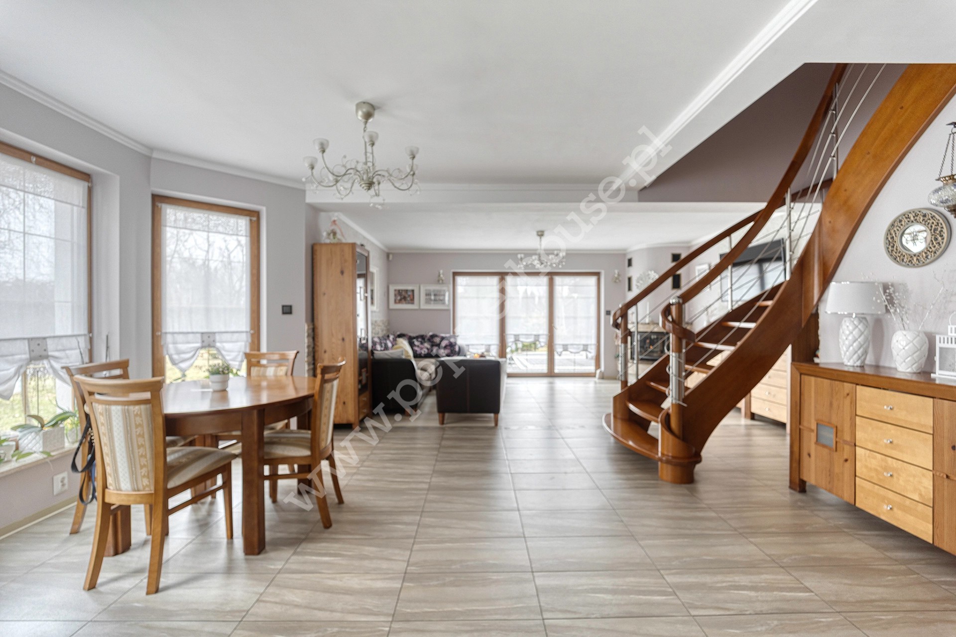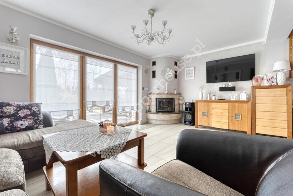 * Przestronny salon z klimatycznym kominkiem i wyjściem na taras.