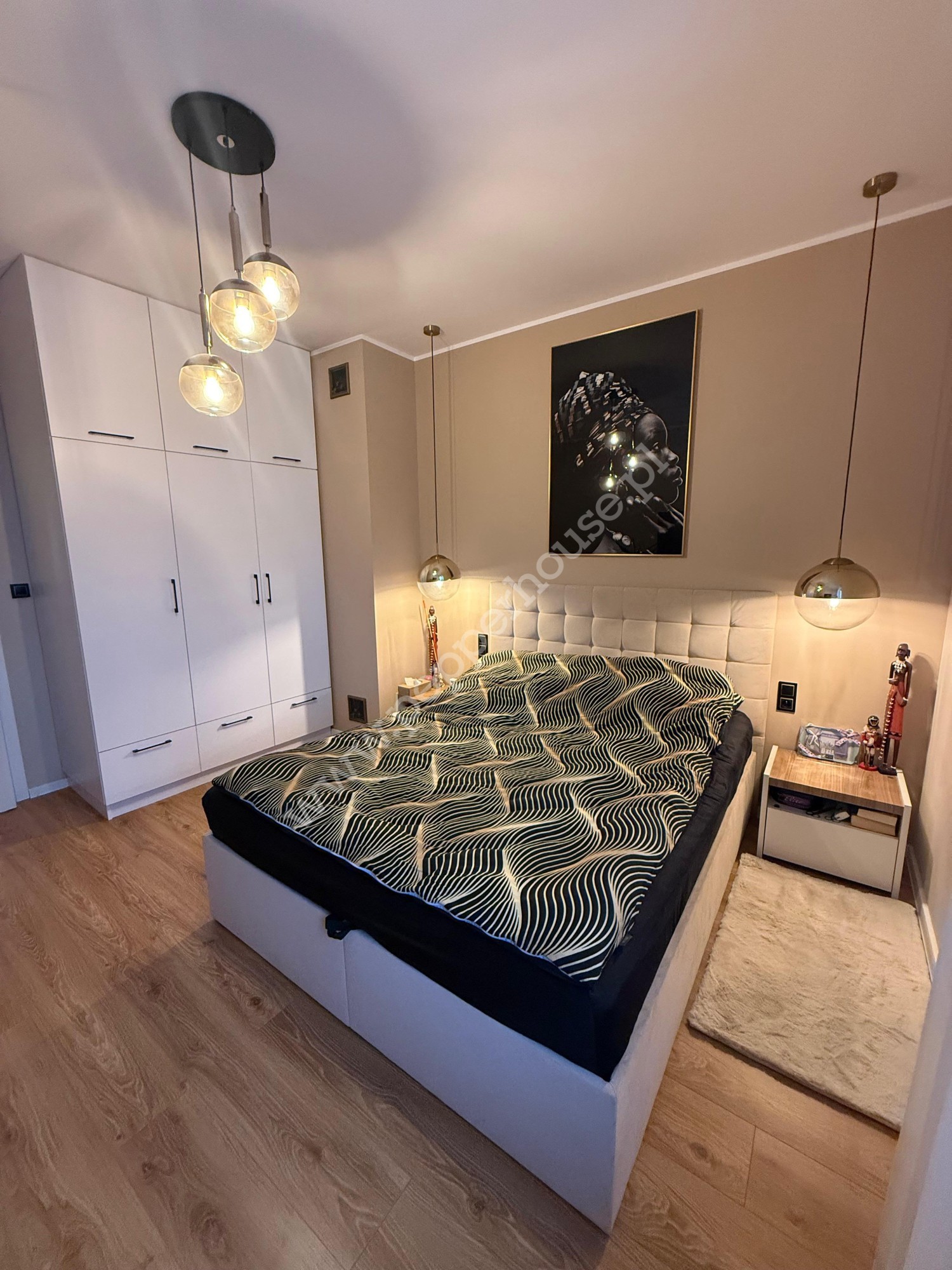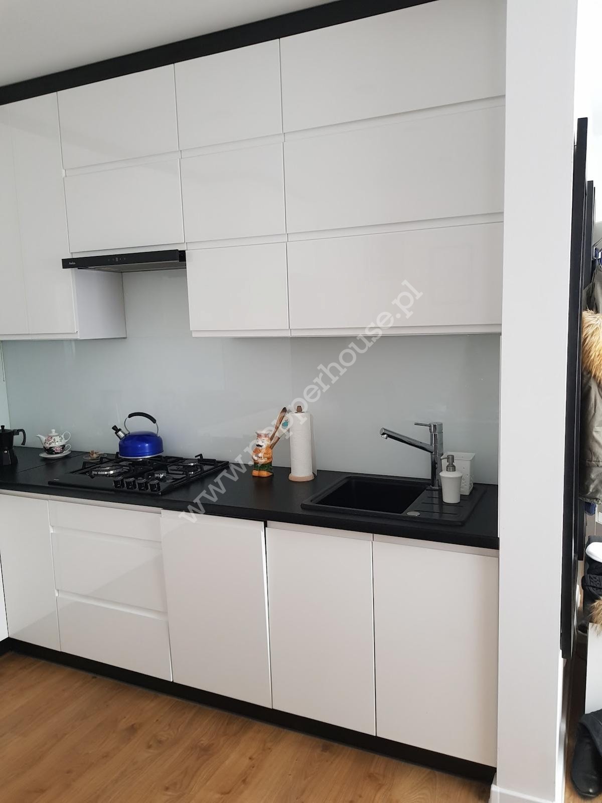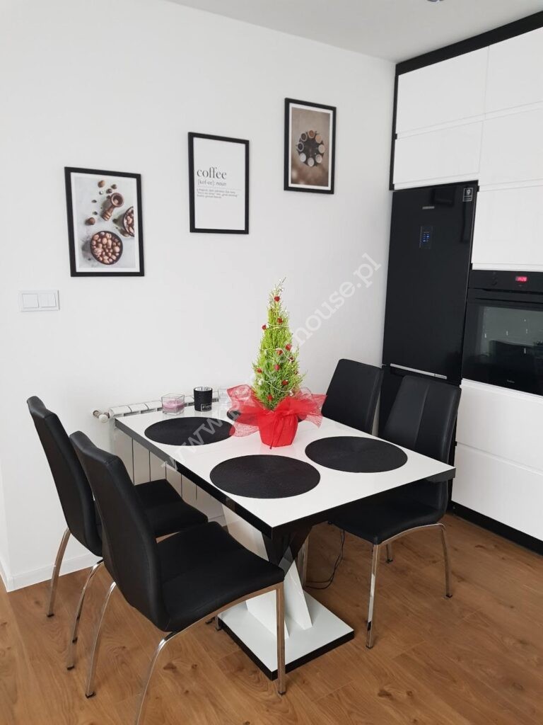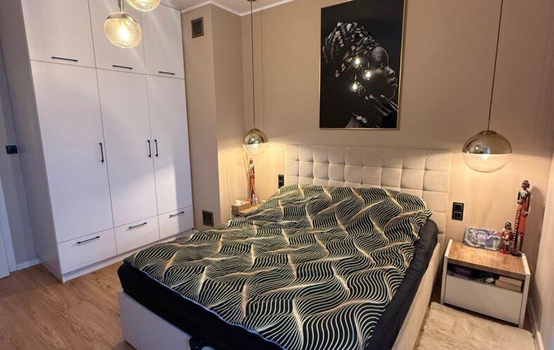 Standard: Meble i sprzęty w zabudowie są w cenie. Nowoczesne, jednolite panele drewnopodobne w całym mieszkaniu.
