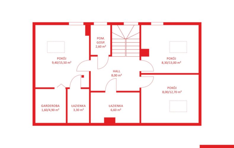 – Przestrzeń i wygoda: ok.140 m2 powierzchni użytkowej + dodatkowe 16 m2 na poddaszu (łącznie 156 m2 do zagospodarowania).