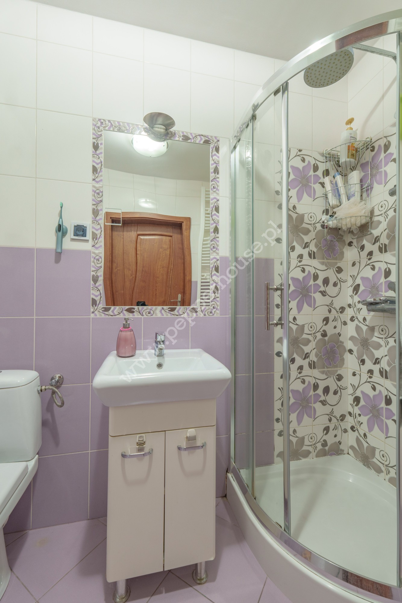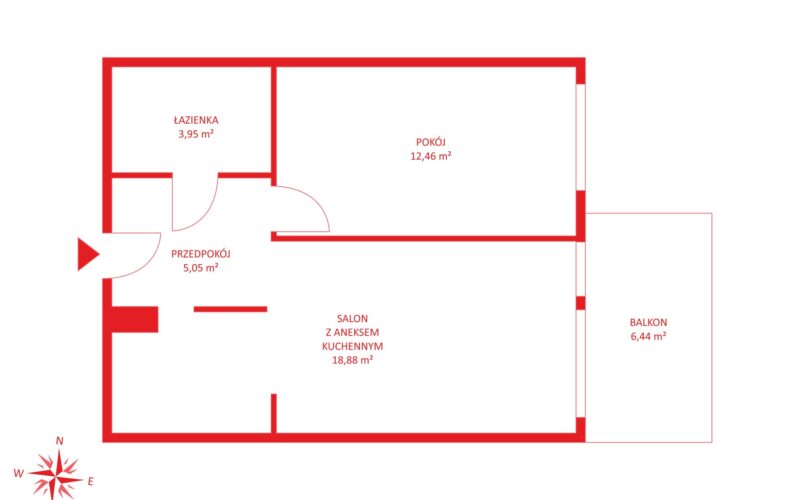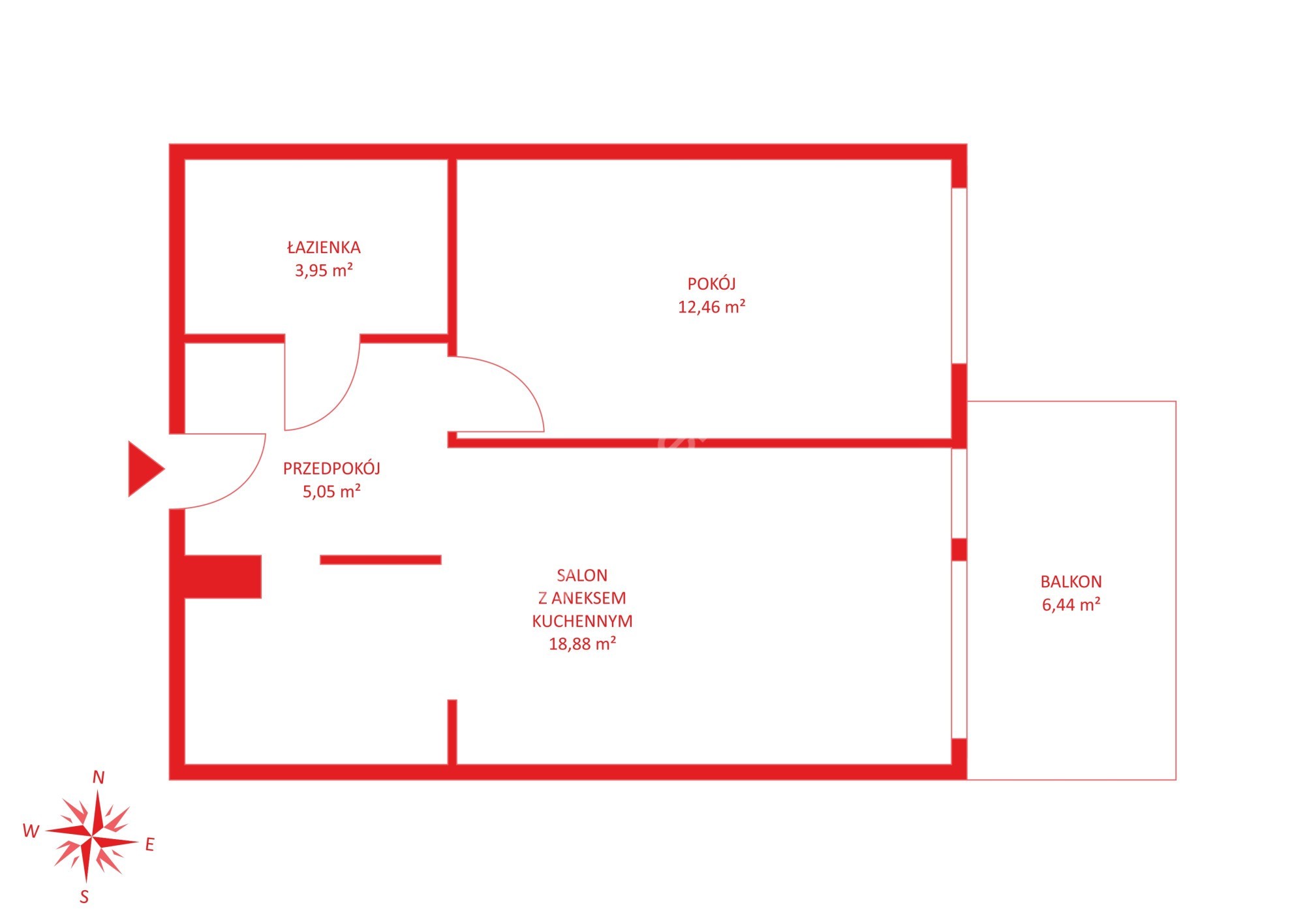 - przestronnego salonu z aneksem kuchennym i wyjściem na balkon