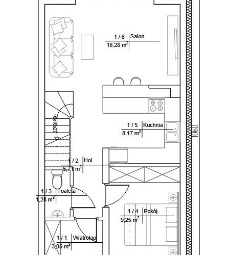 – salonu z aneksem kuchennym (24,45m2)