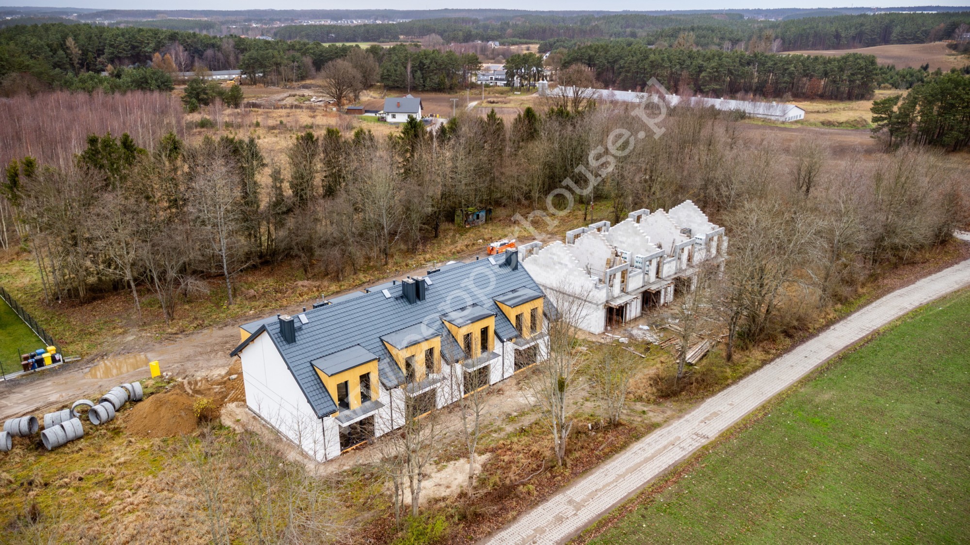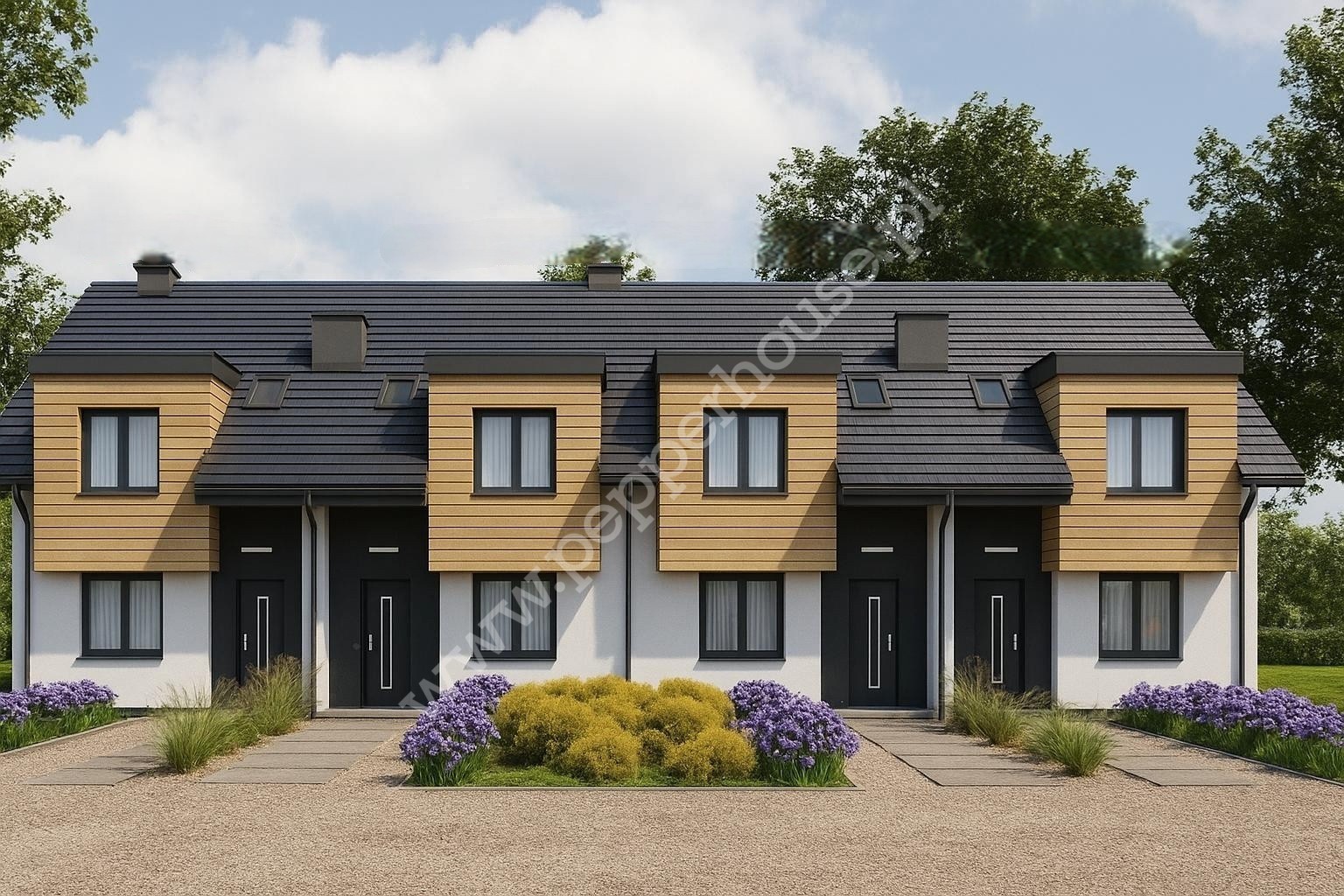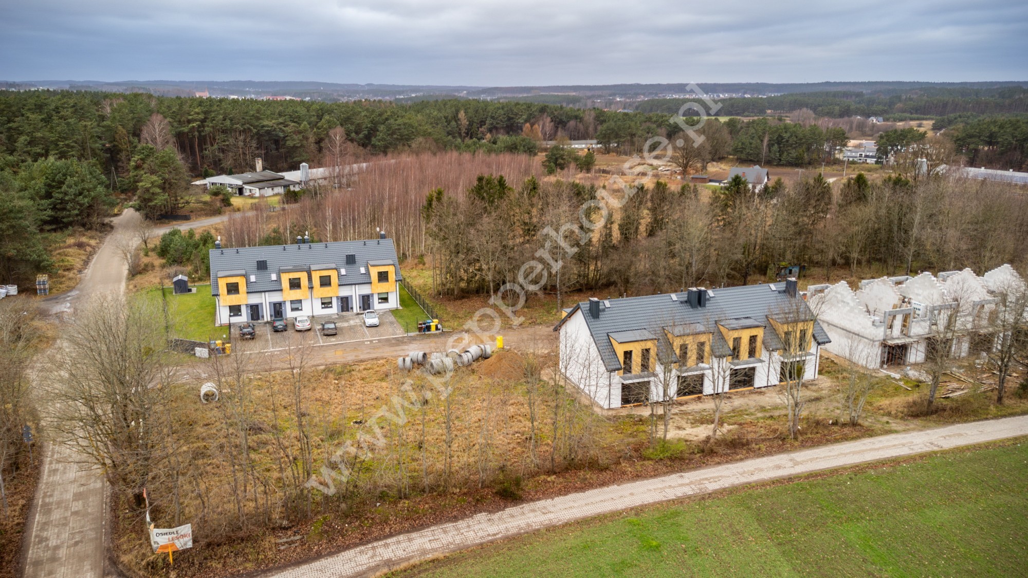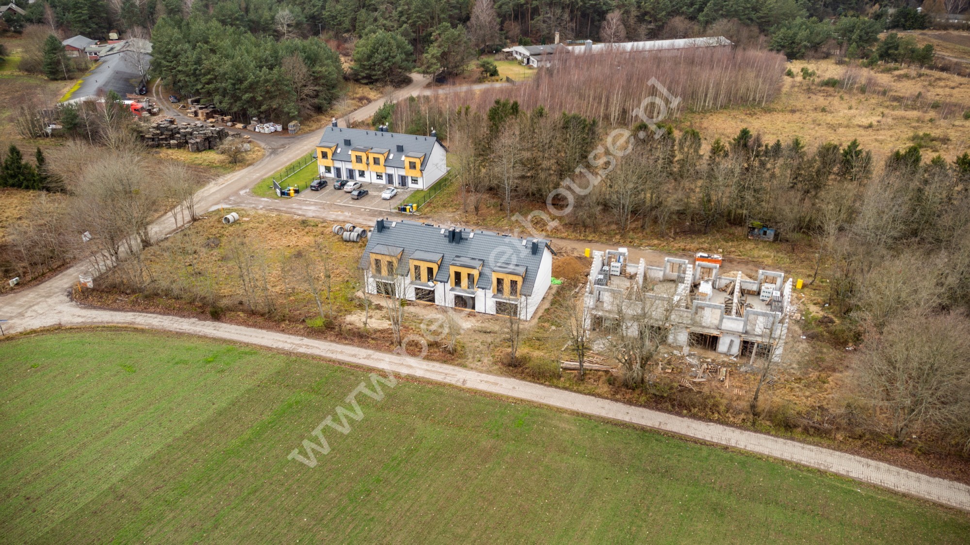 W otoczeniu obiektów wkomponowana zostanie starannie wyselekcjonowana zieleń oraz wykończenie podjazdu do domu.