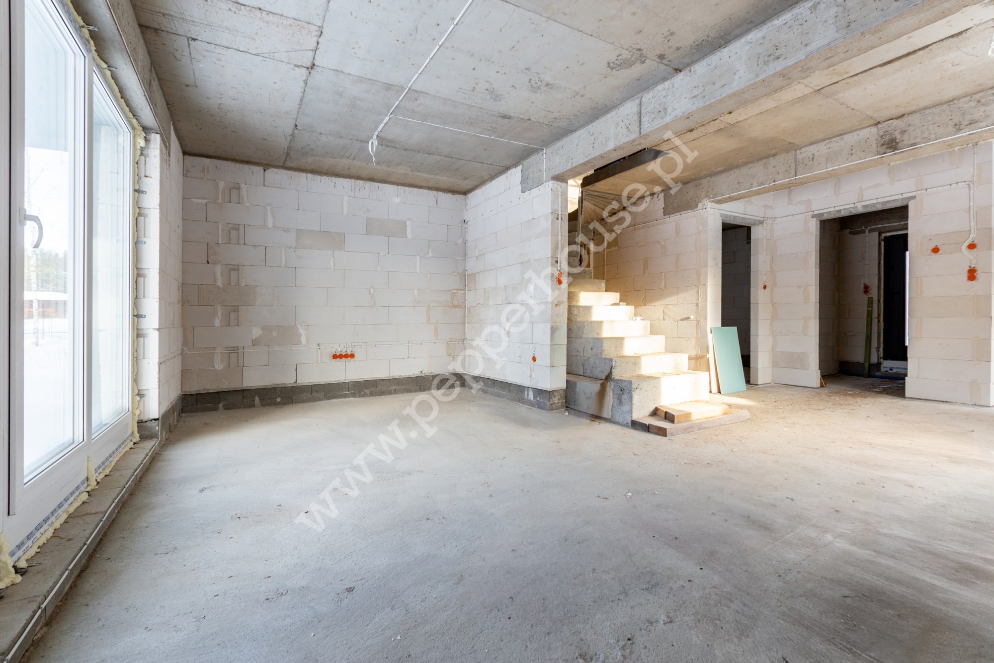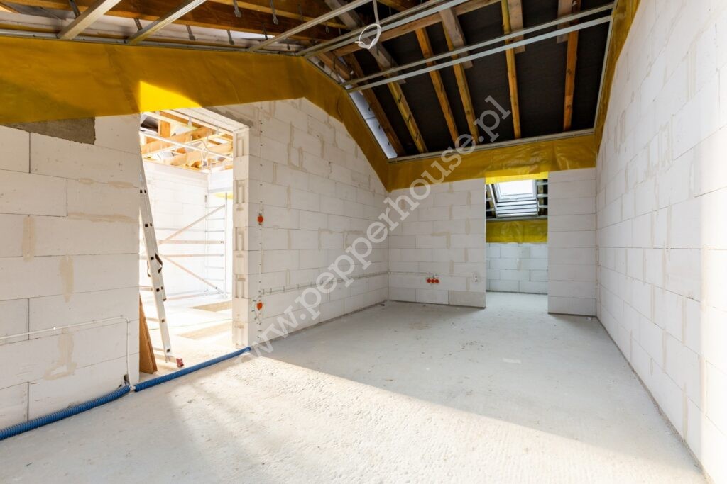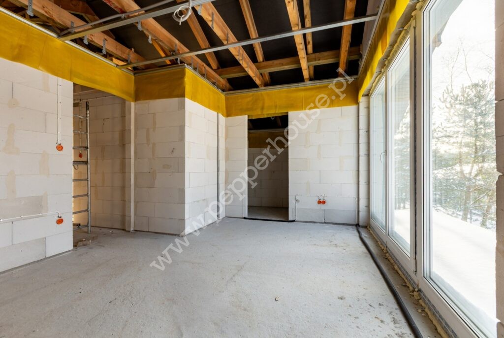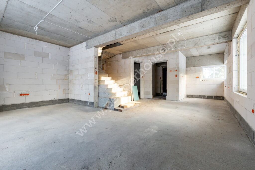 Dom jest przygotowany pod dalsze prace wykończeniowe-bez prac konstrukcyjnych.