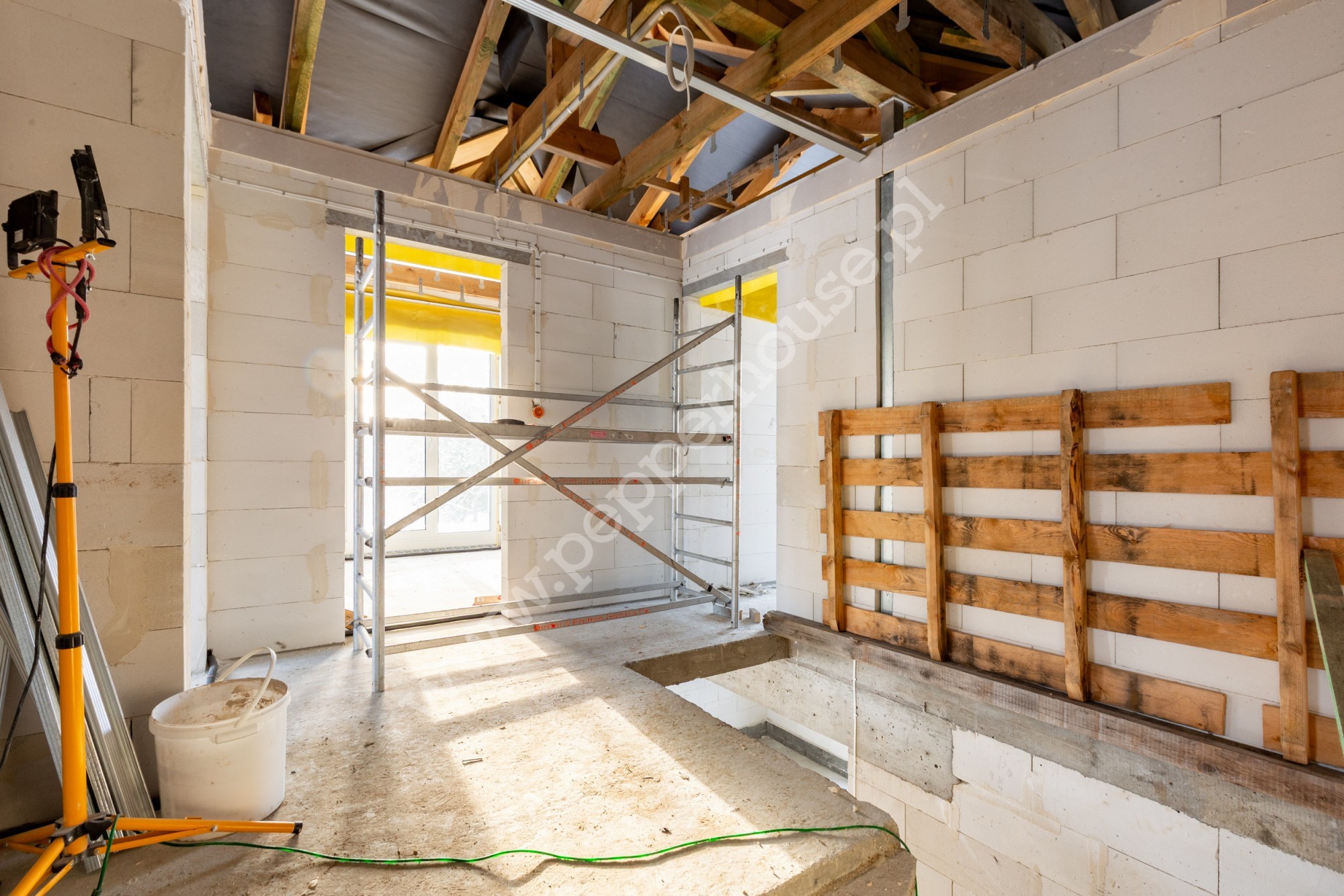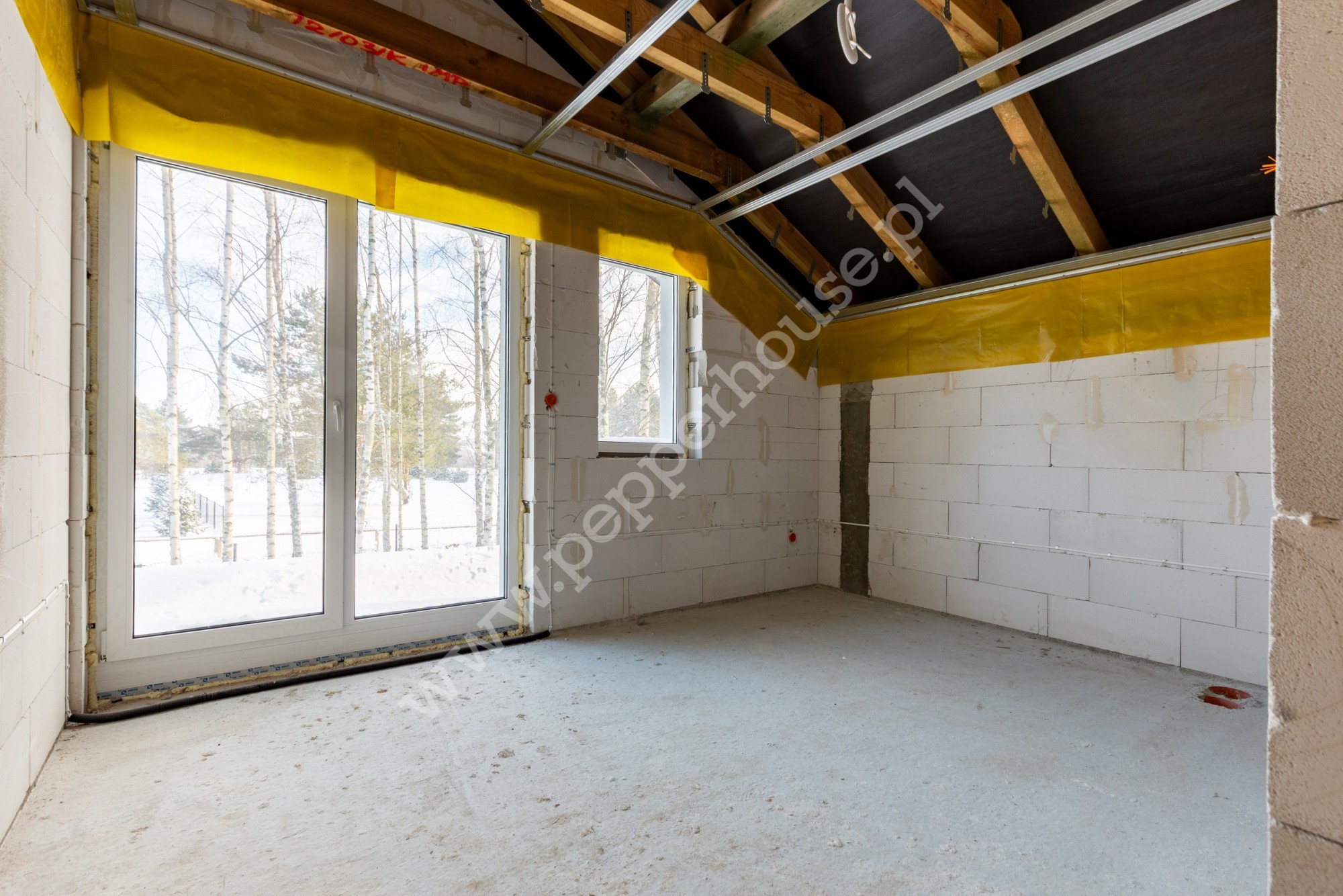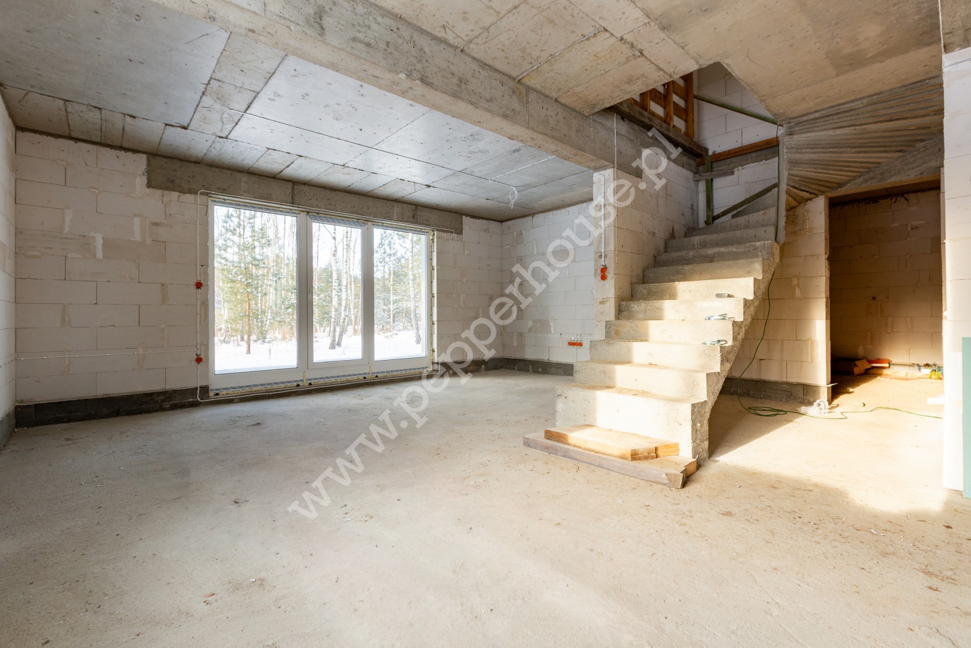Dom jest przygotowany pod dalsze prace wykończeniowe-bez prac konstrukcyjnych.