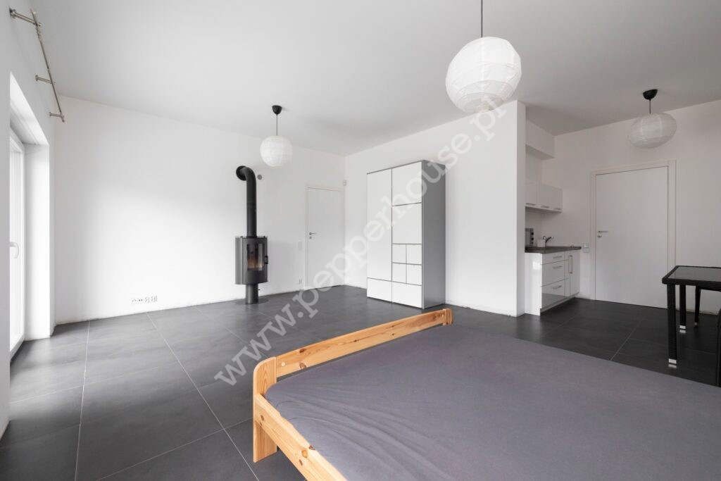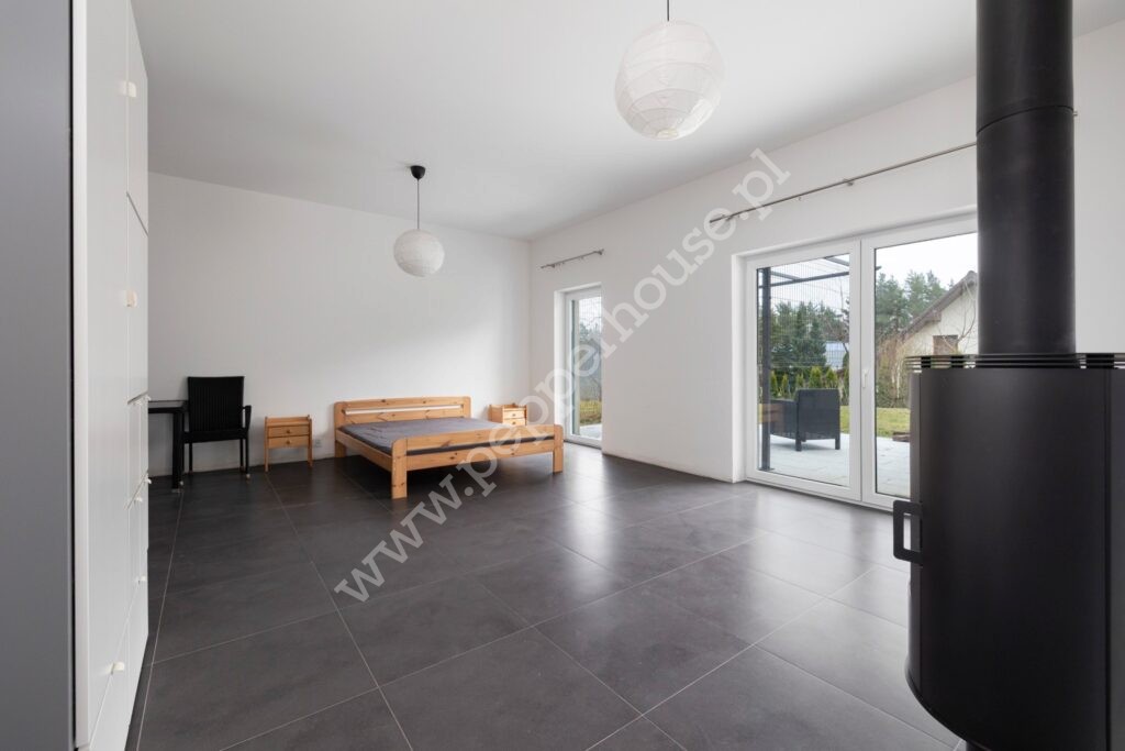 – suszarnia (aktualnie pełniąca funkcje pokoju gościnnego z kuchnią i łazienką z wyjściem na taras i do ogrodu)