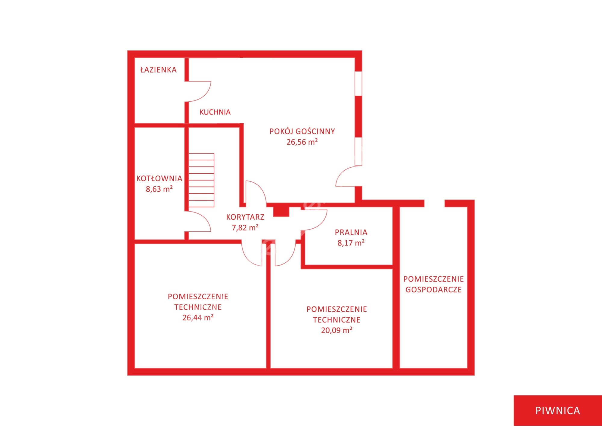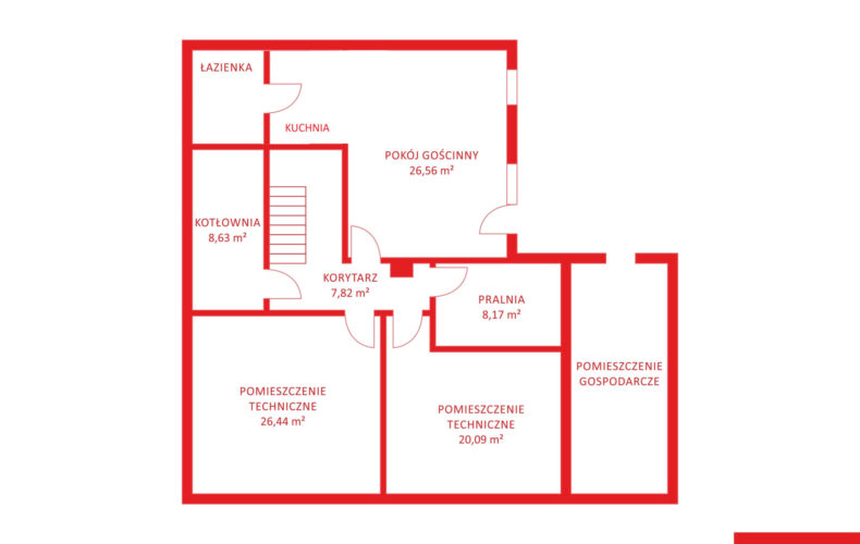 Dodatkowo dom posiada piwnicę o łącznej powierzchni 108,87 mkw. w której mieszczą się: