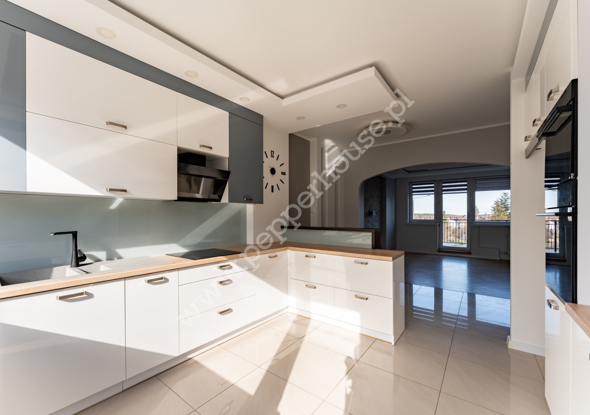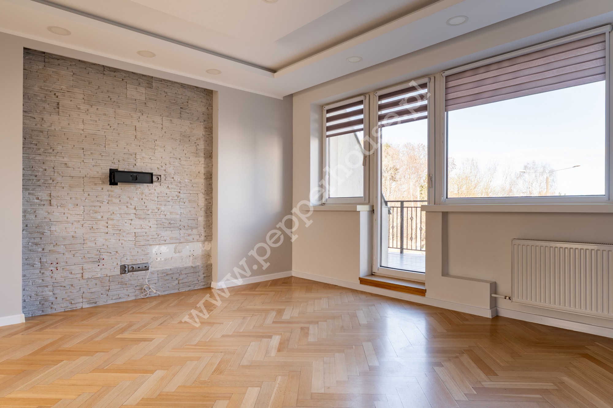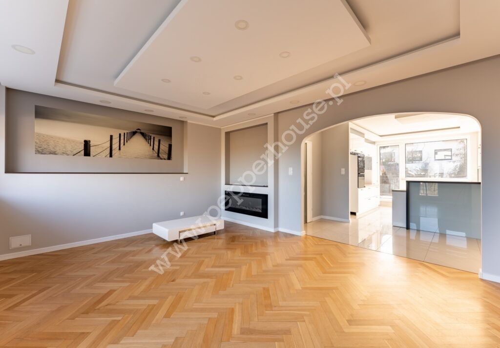 - Przestronny salon z kominkiem i wyjściem na balkon