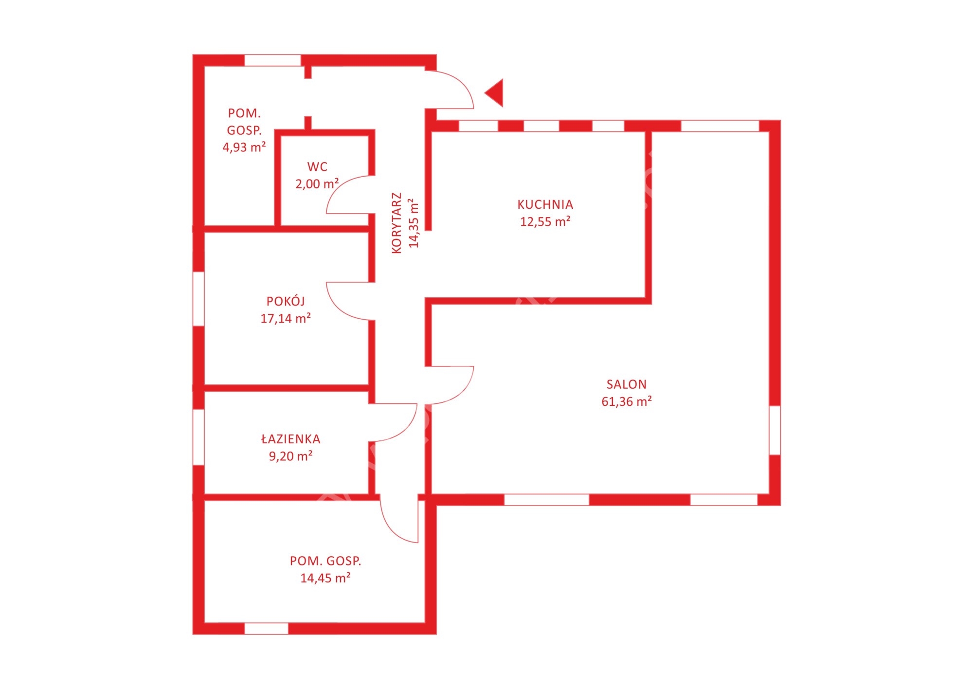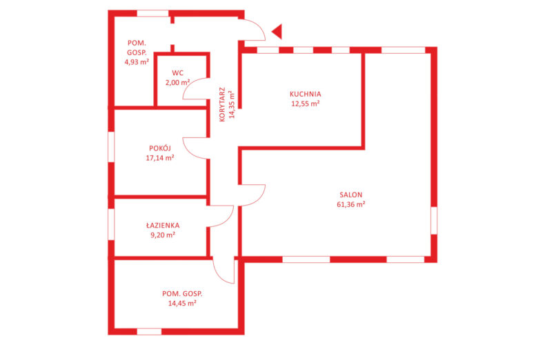 – dwóch pomieszczeni gospodarczych (4,93 m² i 14,45 m²),
