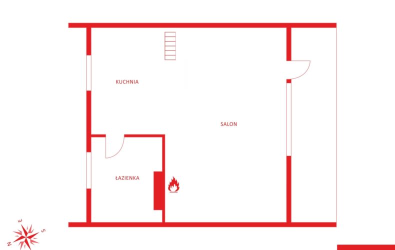 - Wyposażenie: kominek, kuchnia, łazienka,