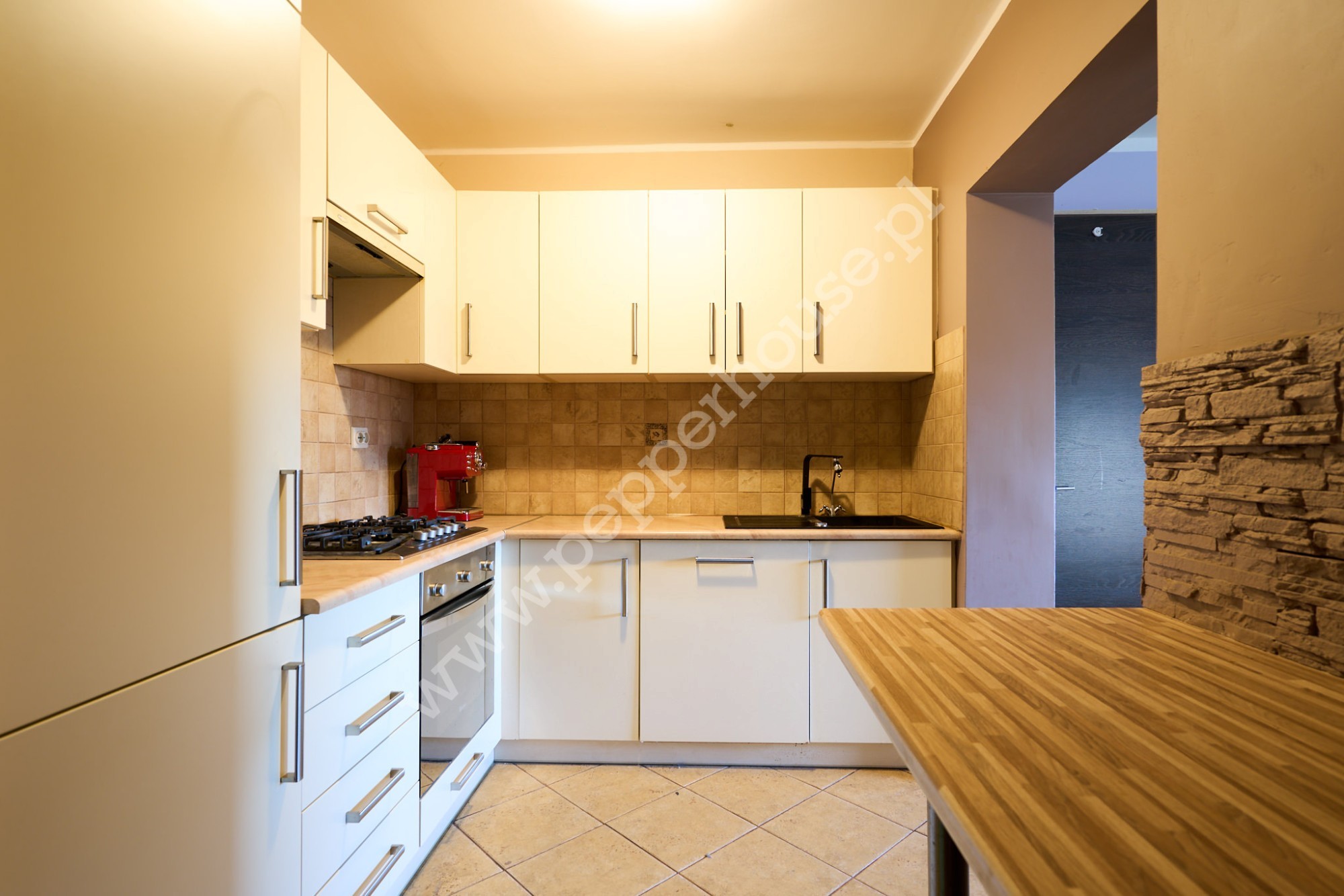 Kuchnia – 5,9 m² w pełni wyposażona w kuchenkę gazową, piekarnik, lodówkę i zamrażarkę,