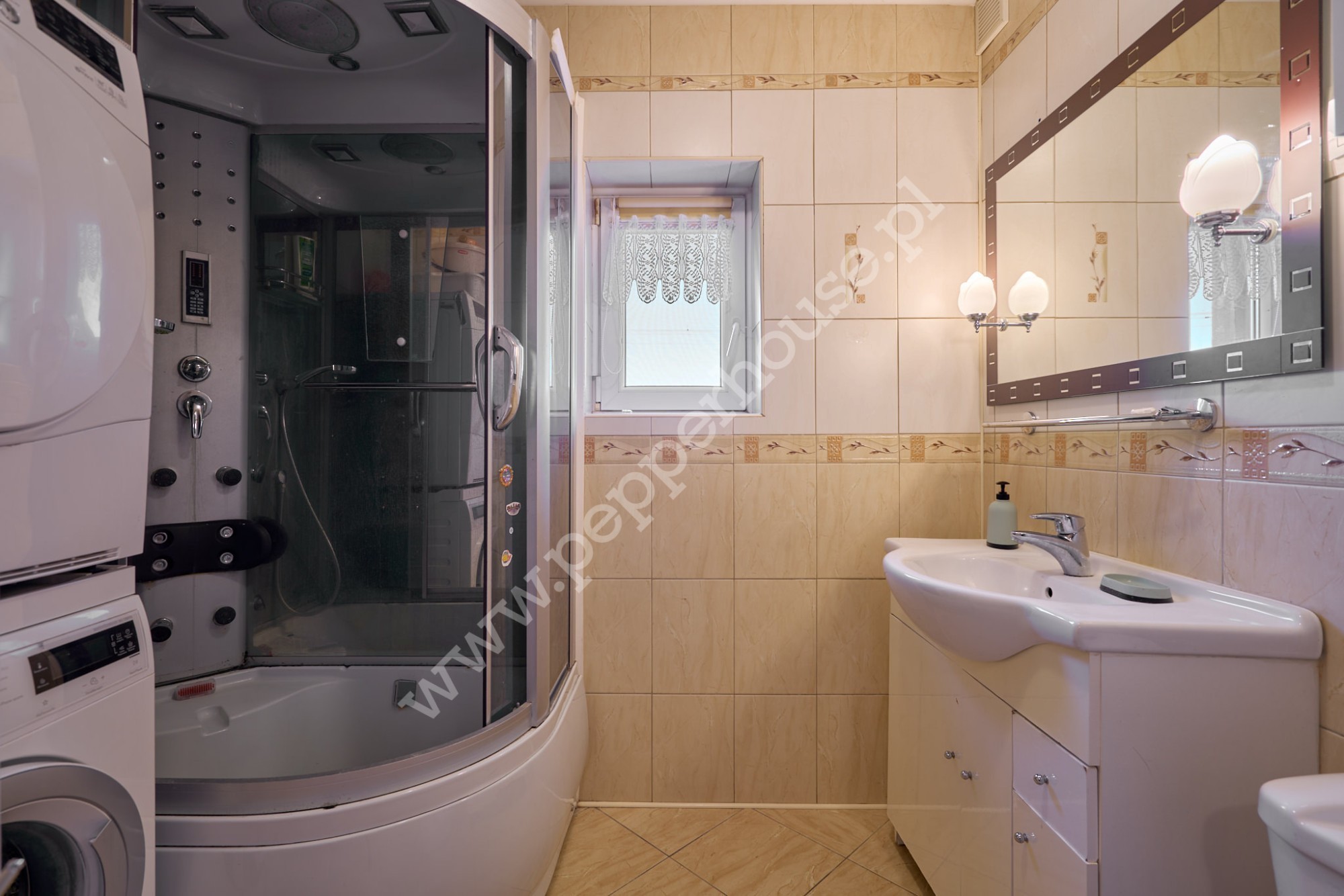 Łazienka – 4,5 m² pralką oraz wanną z funkcją prysznica,