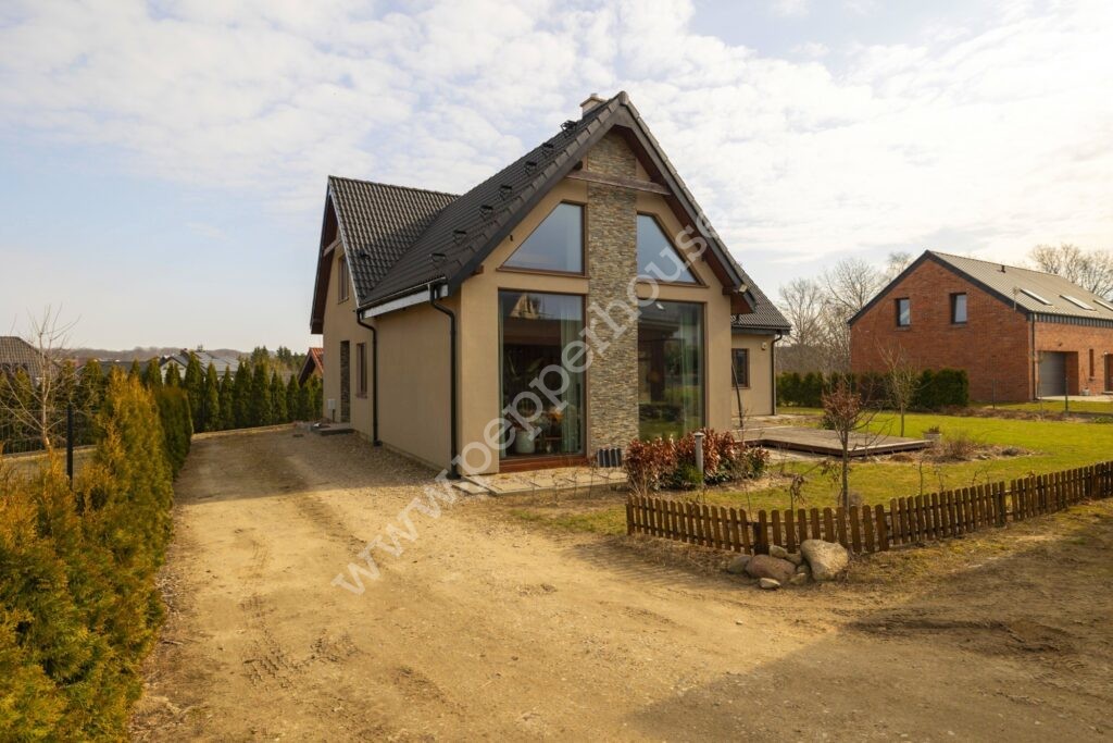 Wybudowany w 2019 roku w technologii szkieletowej z drewna C24, posadowiony na płycie fundamentowej Parati. Dzięki temu dom szybko się nagrzewa, dobrze trzyma temperaturę i nie generuje wysokich kosztów utrzymania.