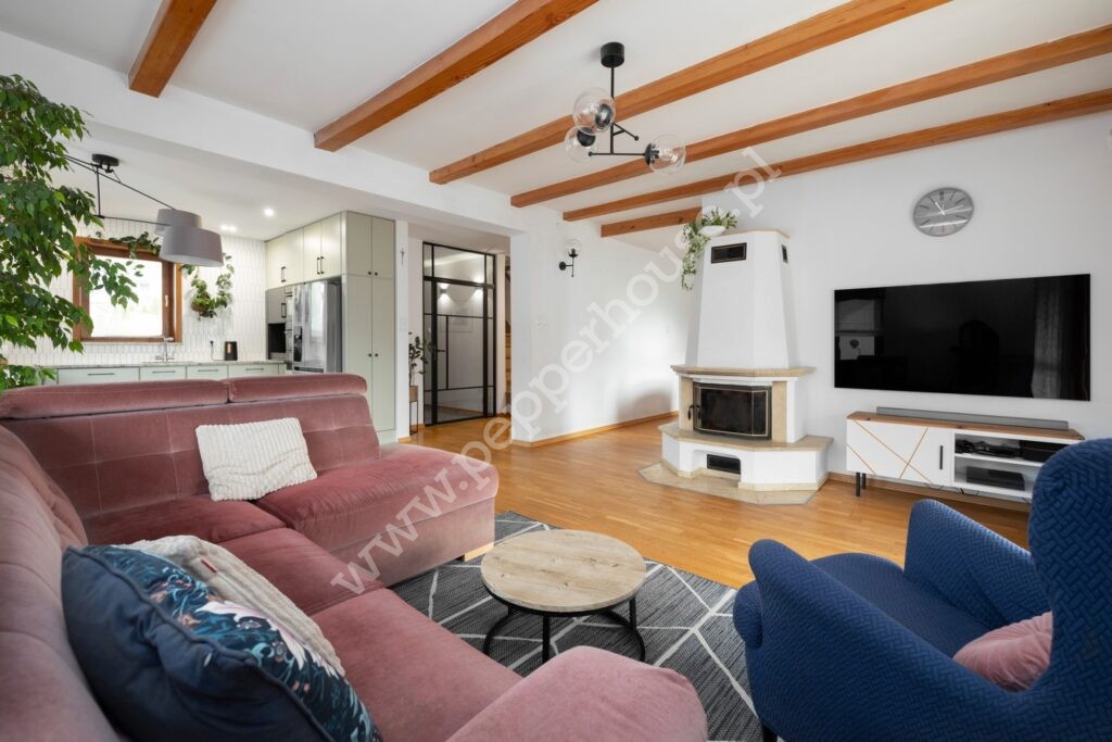 – salon z kominkiem z wyjściem na taras