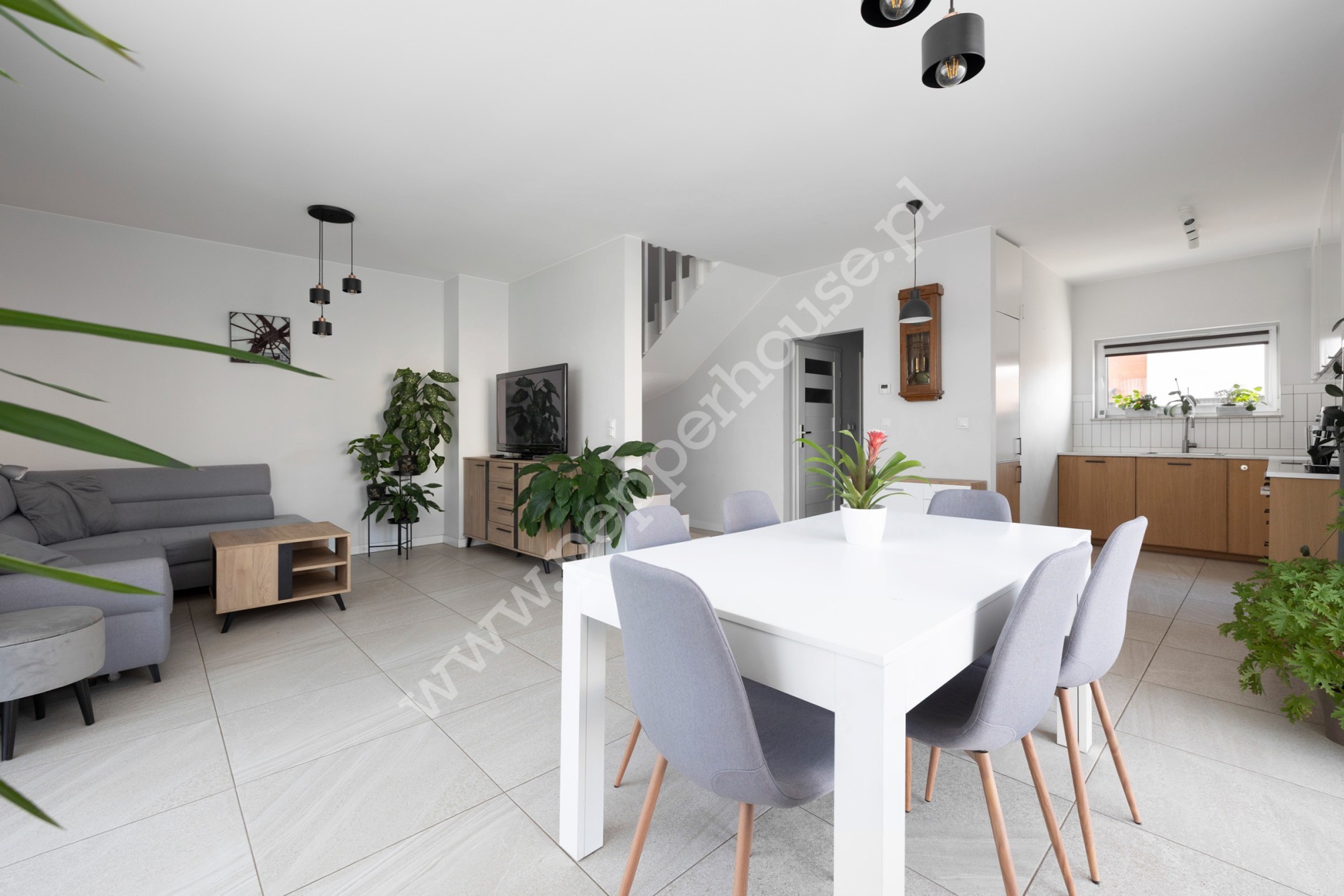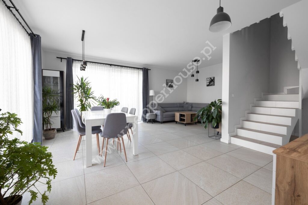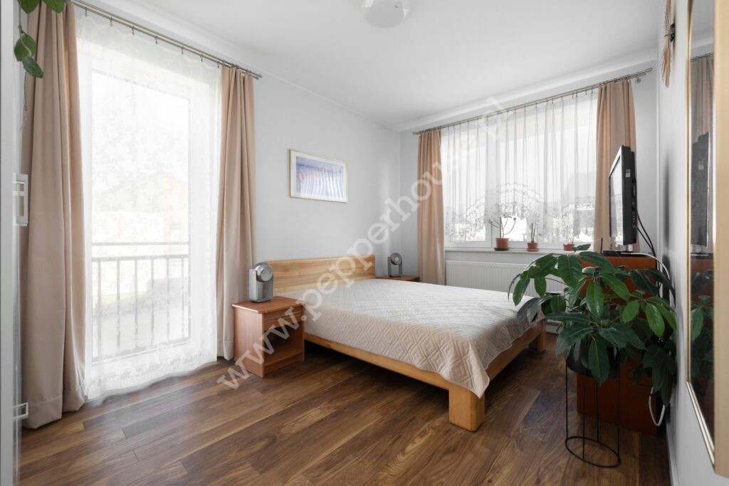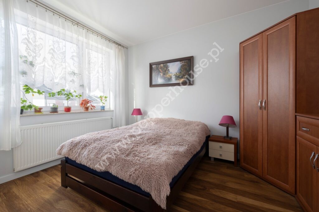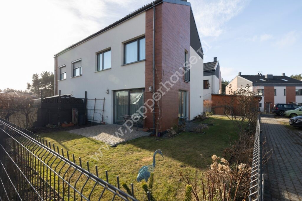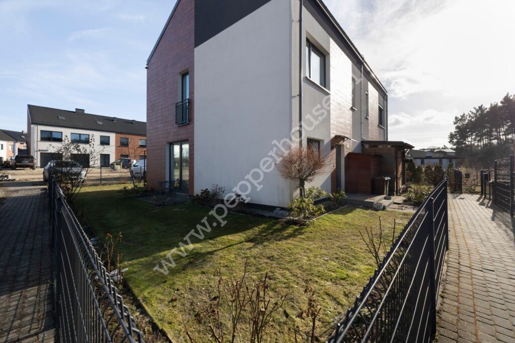 Dom w zabudowie bliźniaczej 102,38 m2 + 47 m2 poddasze. Całość urządzona w neutralnym, skandynawskim stylu. W salonie duże przesuwne okna tarasowe dzięki czemu wnętrze jest jasne i słoneczne. Kuchnia w pełni urządzona i wyposażona. Na piętrze 3 wygodne sypialnie (bez skosów) i duża łazienka. Gotowe do zamieszkania.
