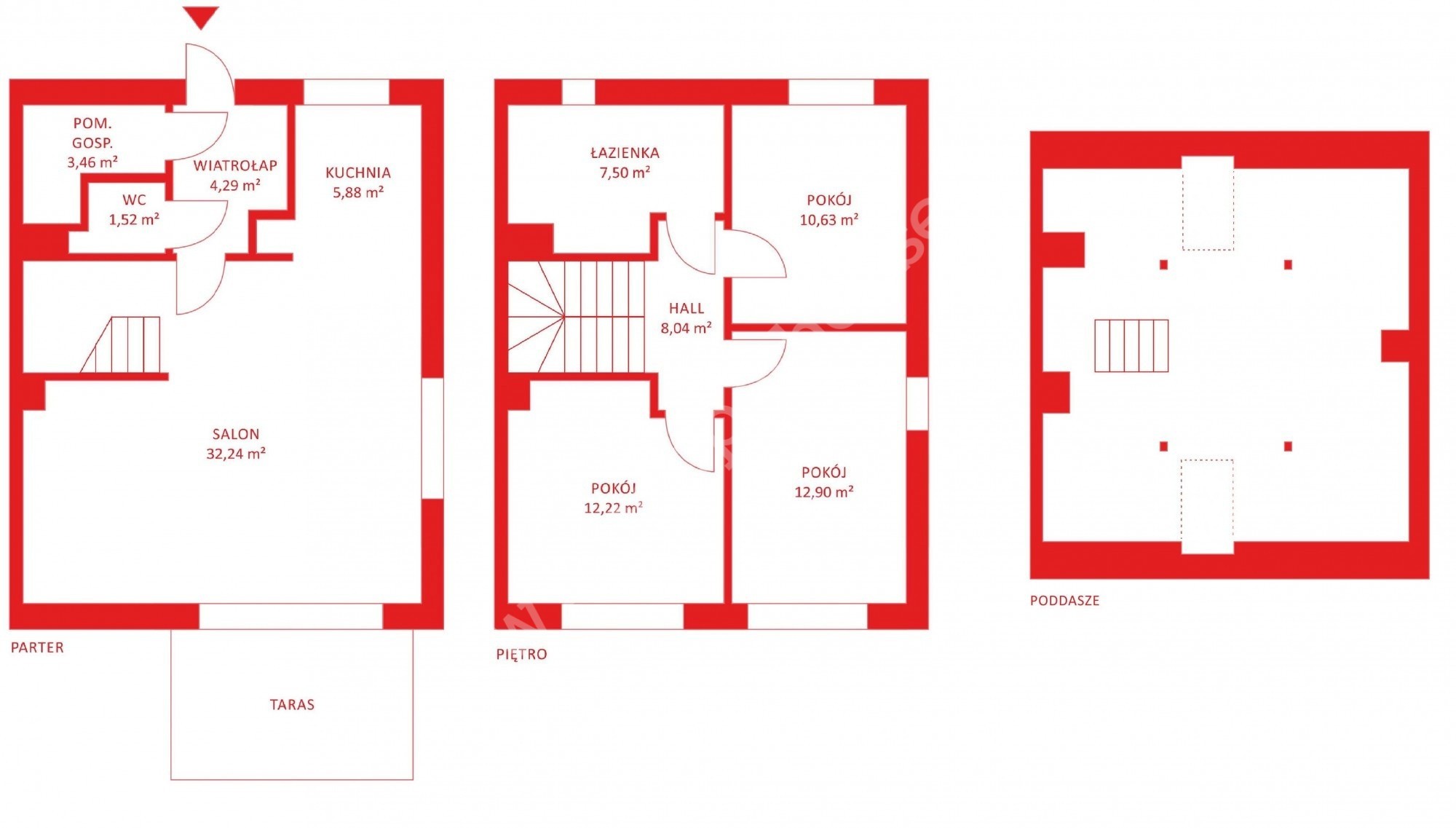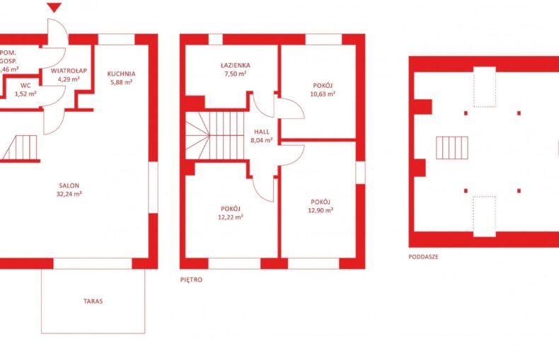 PIĘTRO: 3 pokoje, łazienka